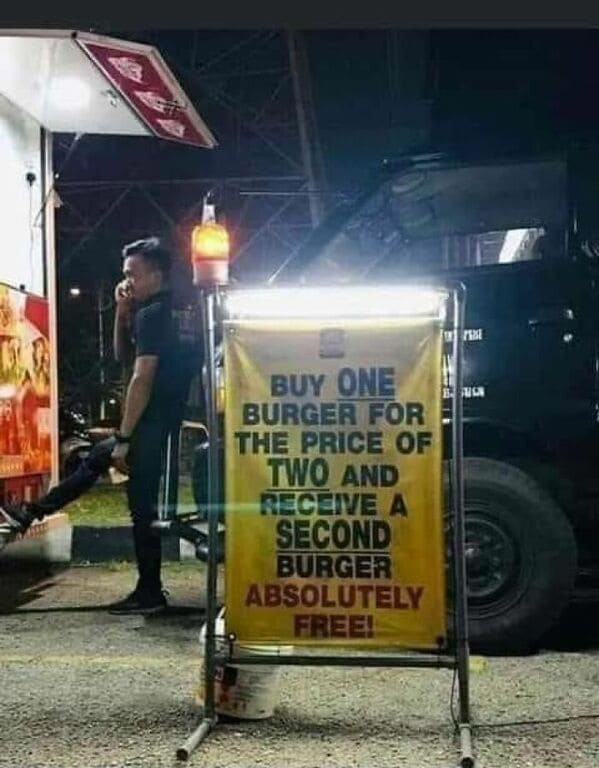Reminds me of the ferry port shop way back, Boulogne I think it was, big advertising banner for wine, Buy two for three! I spent 15 minutes trying to explain to the shop why that would not work. ![]()