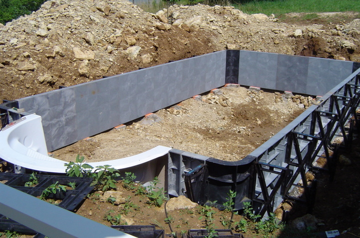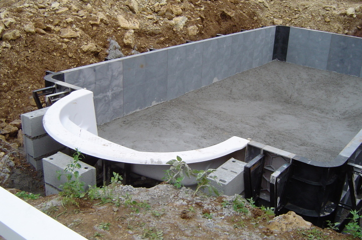 I have a kit built in ground pool with no ferrous parts the sidewalls are made from Graphite reinforced plastic as are all the nuts and bolts etc. Polystyrene sheet can be added to the sidewalls. I had a Fibre reinforced concrete base laid over the bedrock and smoothed to shape, then a thick 'carpet' before fitting the PVC liner.