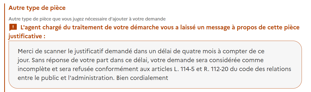 Just to close this thread out incase it helps someone else, it turned out for me that the missing piece of information was a seperate document to substantiate my arrival date in France. I thought I had covered that with other uploads but apparently not. from what I can tell from the experience of others too, it anyone ever receives this message it is as Stella said: it can refer to anything on the original list which is missing, so a systematic check is needed to ensure each has been satisfied. Thanks again for the help.