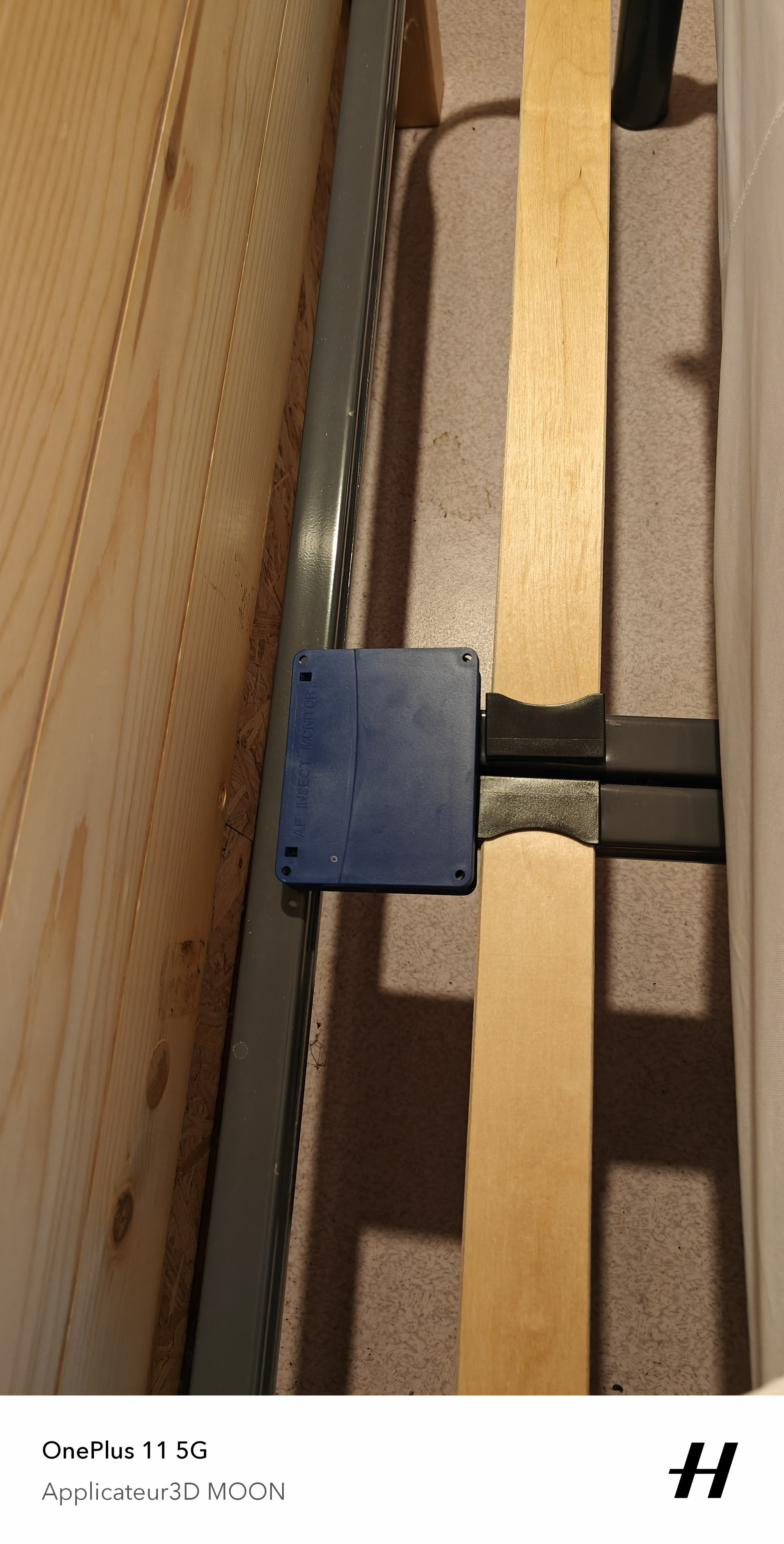 Here’s an example of one of my bed bug traps, placed headboard end between the slats and the mattress.