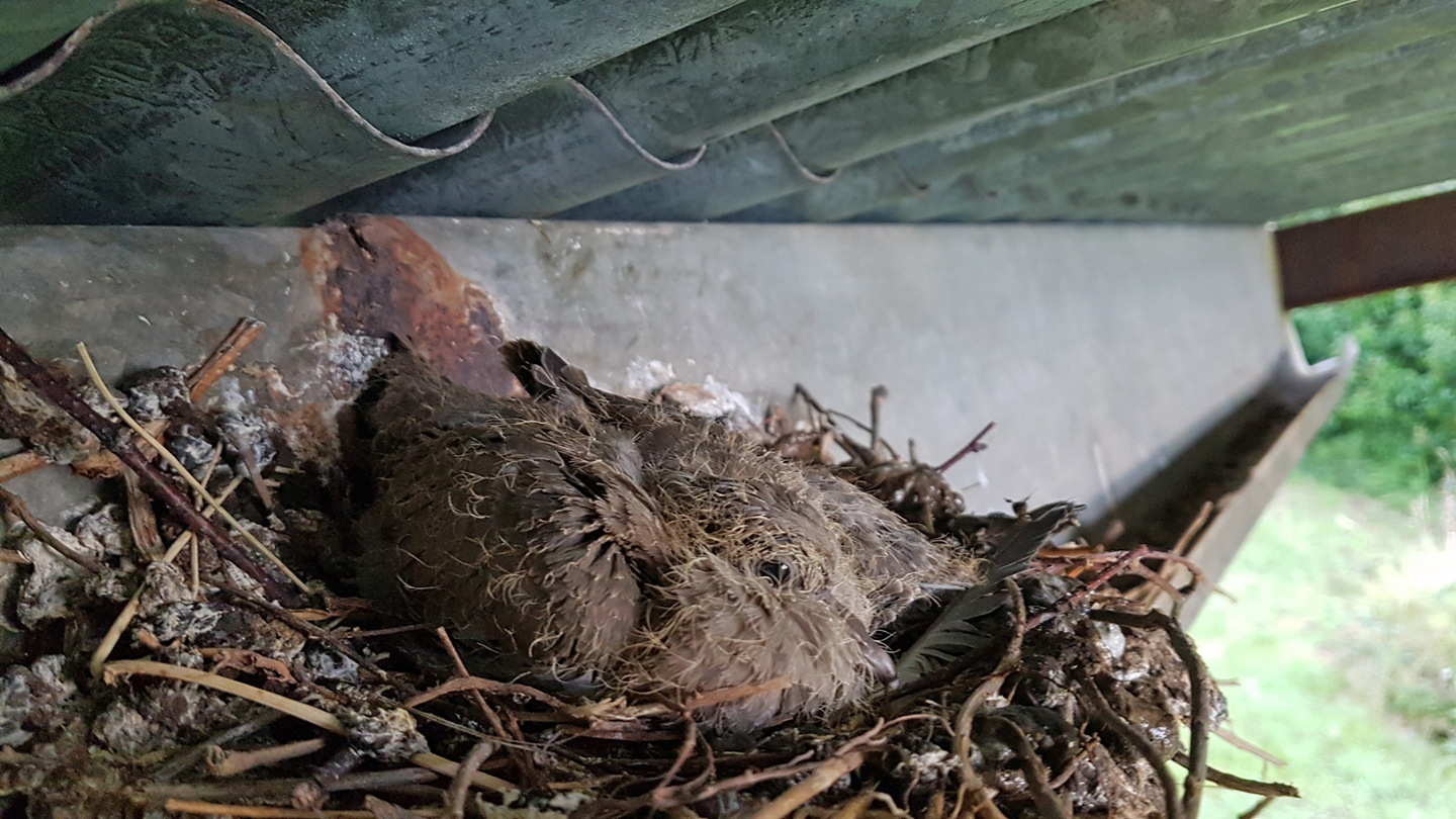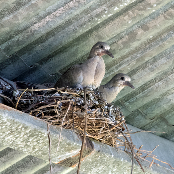 Twelve days later, today the 22nd June, had a peek and saw 2 quite large birds sitting in the nest preening themselves - the squabs have grown so fast!