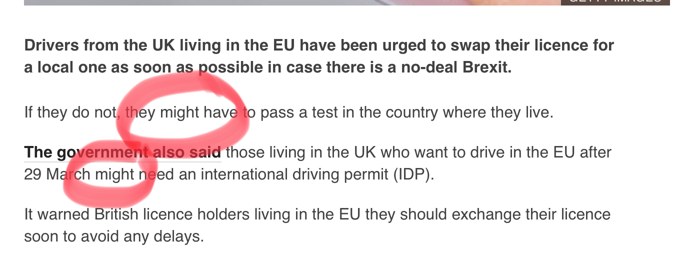 Well I live in France and am more concerned with the law here than what the U.K. says. The article also uses the word may so that’s not even the same thing. Even in the event of a no deal Brexit you will have until March 2020 to change your licence, or at least submit your paperwork, why the scaremongering about having to retake a test?