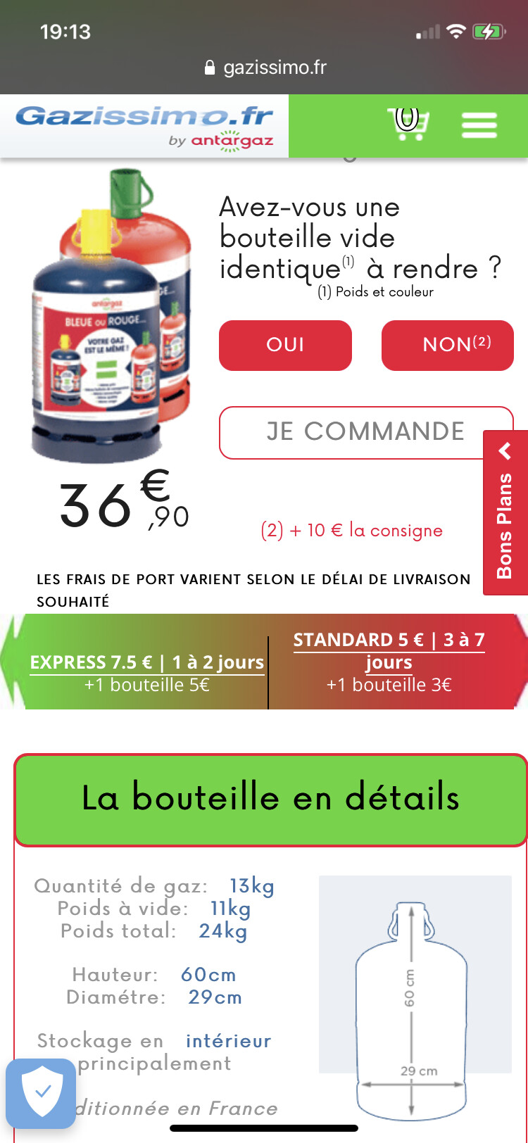 When my 3 spare bottles were delivered it was a very fit and slender young man who parked at the top of my drive and was carrying 2 of my 3 spare bottles one on each hand….!