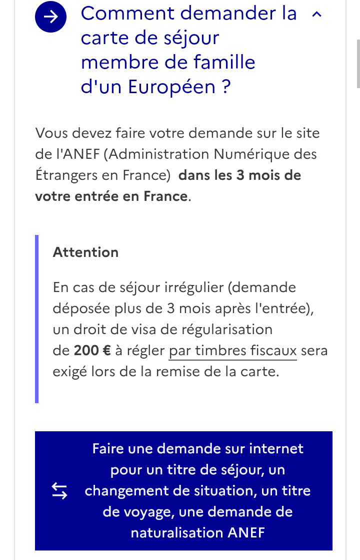 The Q&A form that Damaris quotes is dated March 2023. Dated February 2024 is the latest guidance below saying that demands for the EU Family CdS should be made online via ANEF. Given the above dates I would still advise proceeding with the online application until we hear otherwise. I have a feeling that the 2023 document reflected the interim position before applications for EU family members were included in the online process. Before then, applications for this CdS were definitely made at the relevant Préfectures.