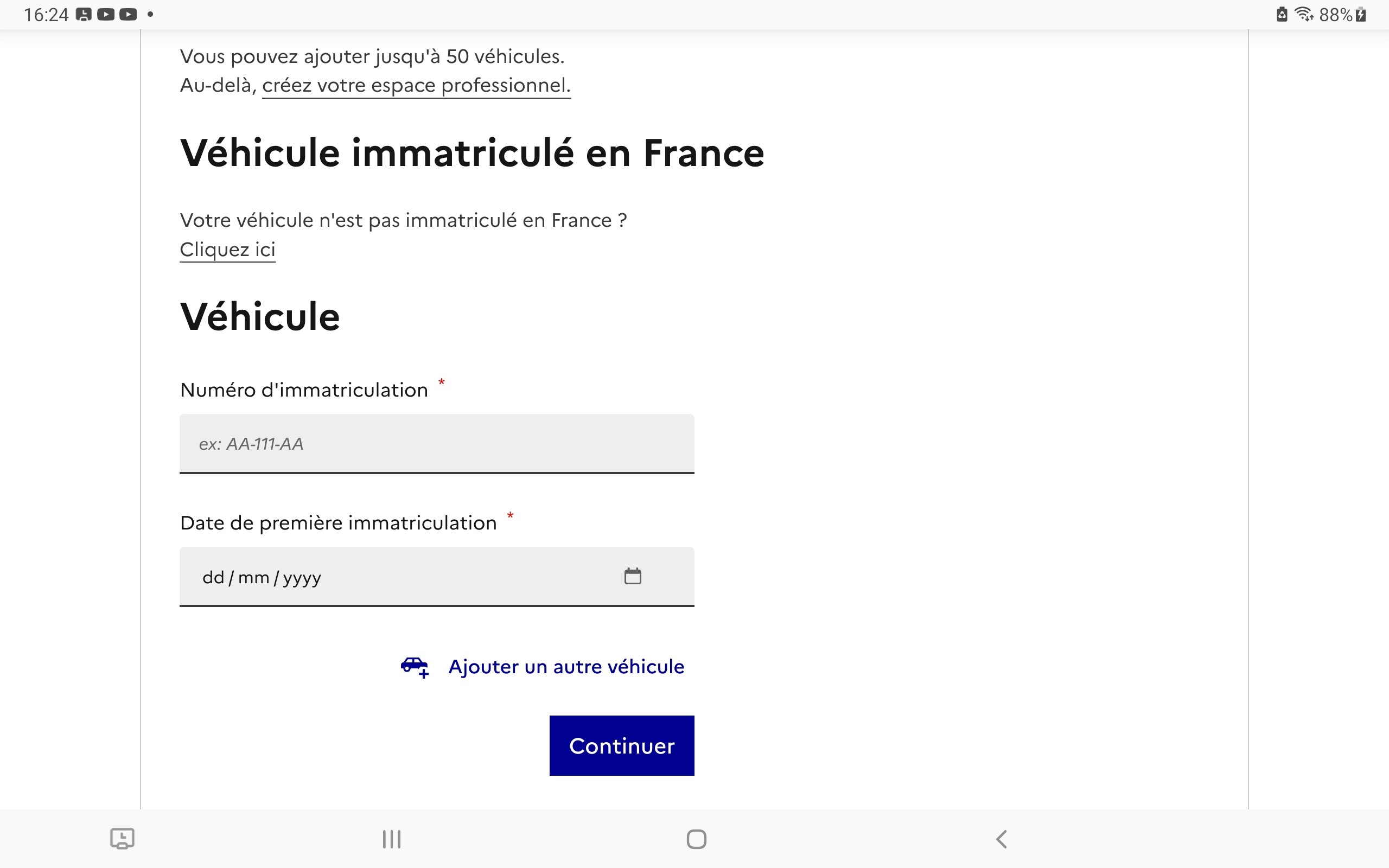 I don’t think you can - but whereas the form for French-registered vehicles just asks for the car registration number and date of registration, the form for non-French vehicles asks lots more questions including which Euro emissions classification your vehicle comes under and its CO2 rating.