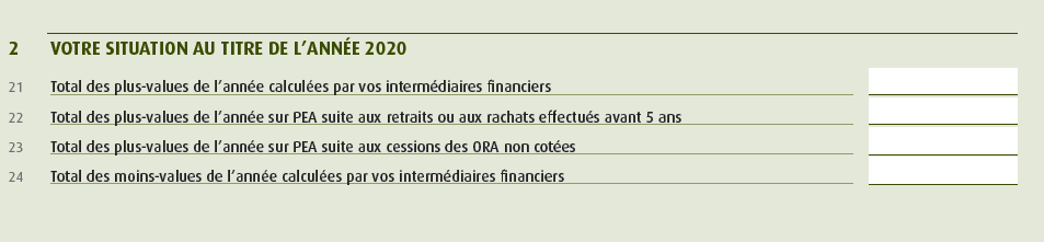 Secondly, when you sell stocks, and your broker, like Revolut Trading, Trading212 etc does not give French tax authorities any recap of your stock trades, then you have to declare it yourself using the form 2074, know as the green form . The online declaration is limited to 9 sell-offs of stocks. If you have more, then you will need to declare using the paper form, and attach an Excel sheet detailing your gains (I made a template if anyone is interested can PM). Note that, for your cost of acquisition, you must use the weighted average price per share.