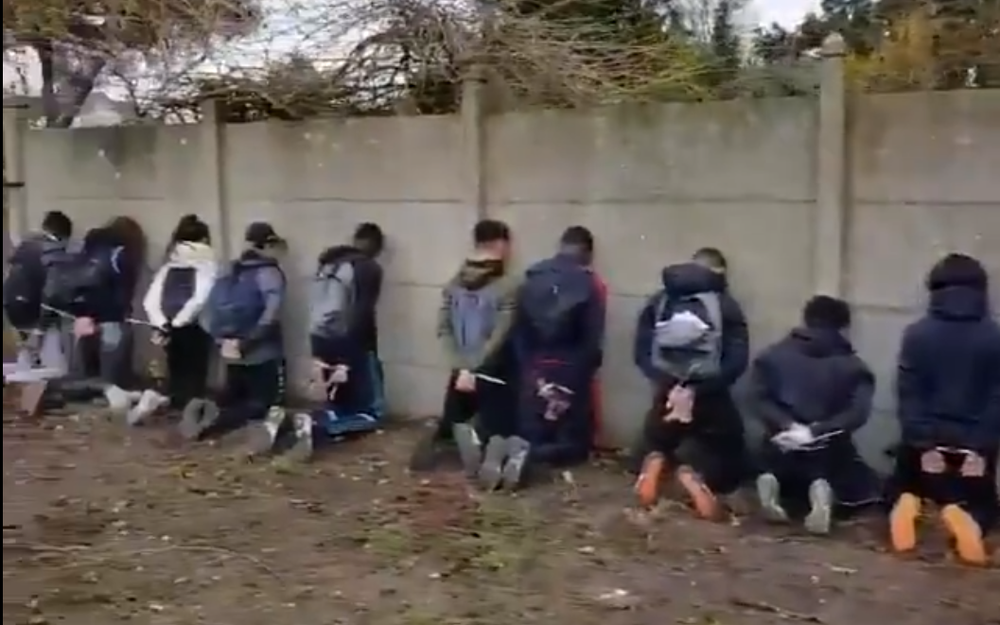 Some folk are up in arms… seeing youngster, on their knees, facing the wall with their hands either on their heads or behind their backs.