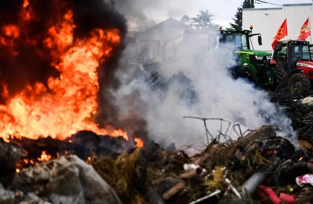 For instance seen tyre burning on roads quite often by protest groups of various types over the years not just farmers. More than once at the same roundabout just before the only main bridge into Rouen from the North, workers protests blocking traffic with tyres burning etc.