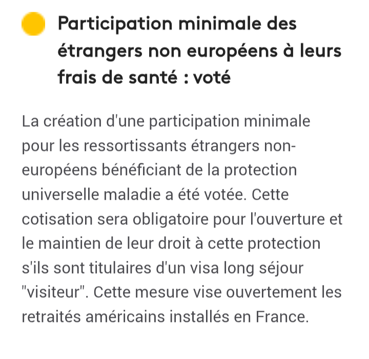 The focus on certain Americans (on visa long séjour visiteur) who don’t pay for the right to enjoy and maintain coverage under PUMa clearly continues to excite députées. 2 résolutions establishing a charge were tabled to address this, voted on, and passed on Saturday according to the below. Obviously any measures voted on by the Assemblée nationale have to survive both discussions in the Senate, and then agreement between the two chambers. The measures seemingly include a requirement to demonstrate private medical coverage of up to €30000 expenses.