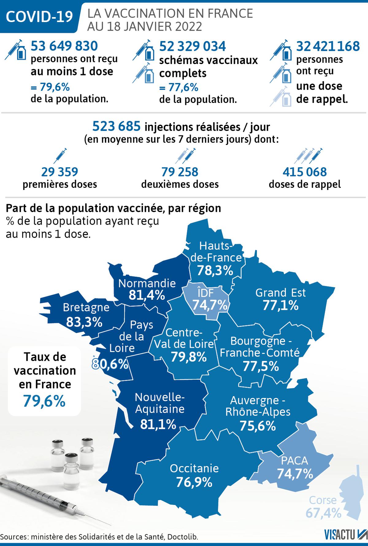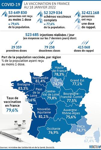 Le pic d’infection de la cinquième vague semble être passé en France, selon l’épidémiologiste Arnaud Fontanet ce lundi 17 janvier 2022. De plus, un reflux semble se dessiner également dans les services de soins critiques ces derniers jours. On fait le point en graphiques sur les derniers chiffres de l’épidémie en France.