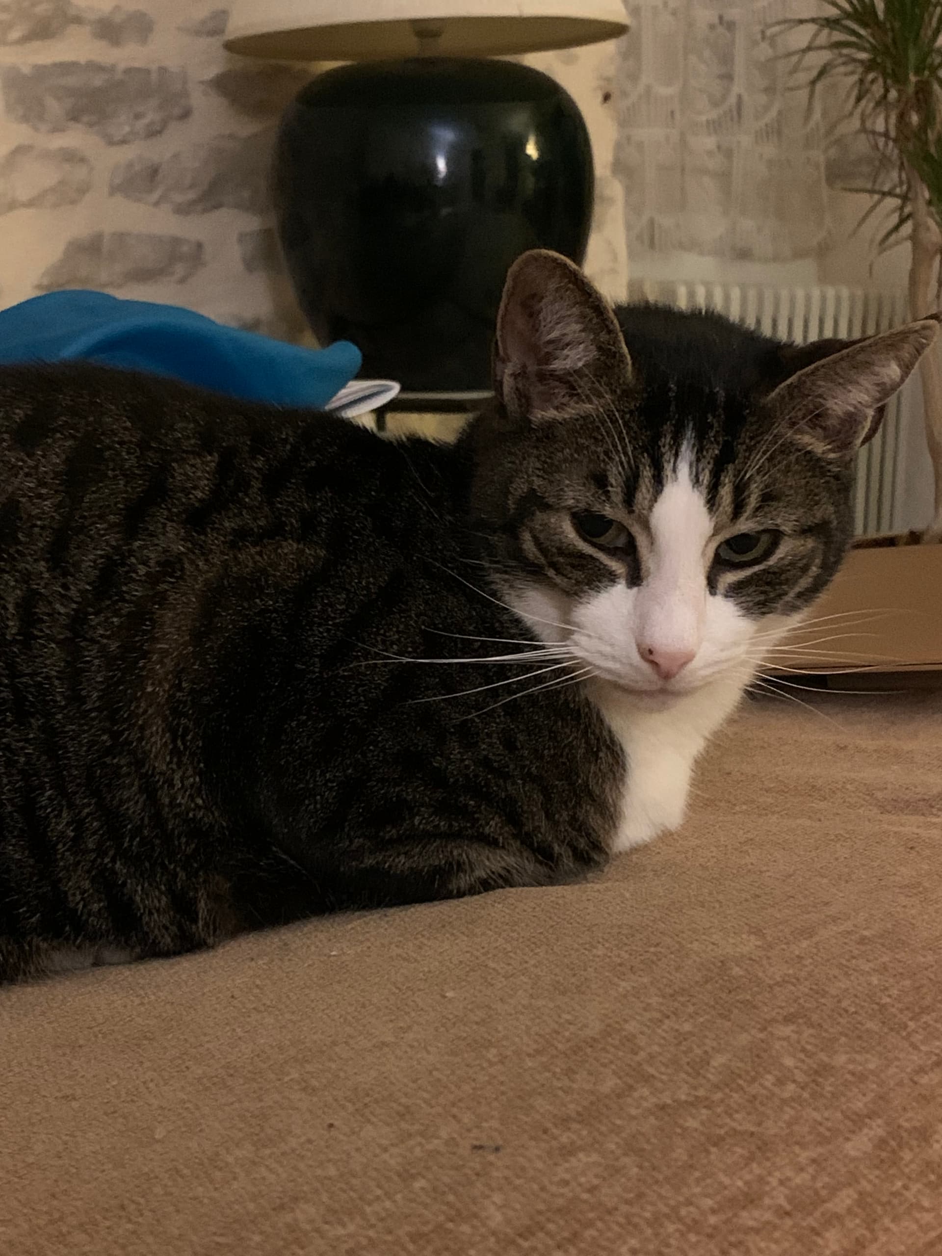 Sheās our garden tiger, I named her Socks, she has white feet. It took her 6 months before she entered the house. I think she was abandoned during the November/ Christmas holidays. Before that she slept under the toilet space where the septic tank is, I built her a box lined with polystyrene and a bed of blankets, though put out water and food by the kitchen door, she arrived in December & would run away whenever we opened the door at first. Now is a different storyā¦