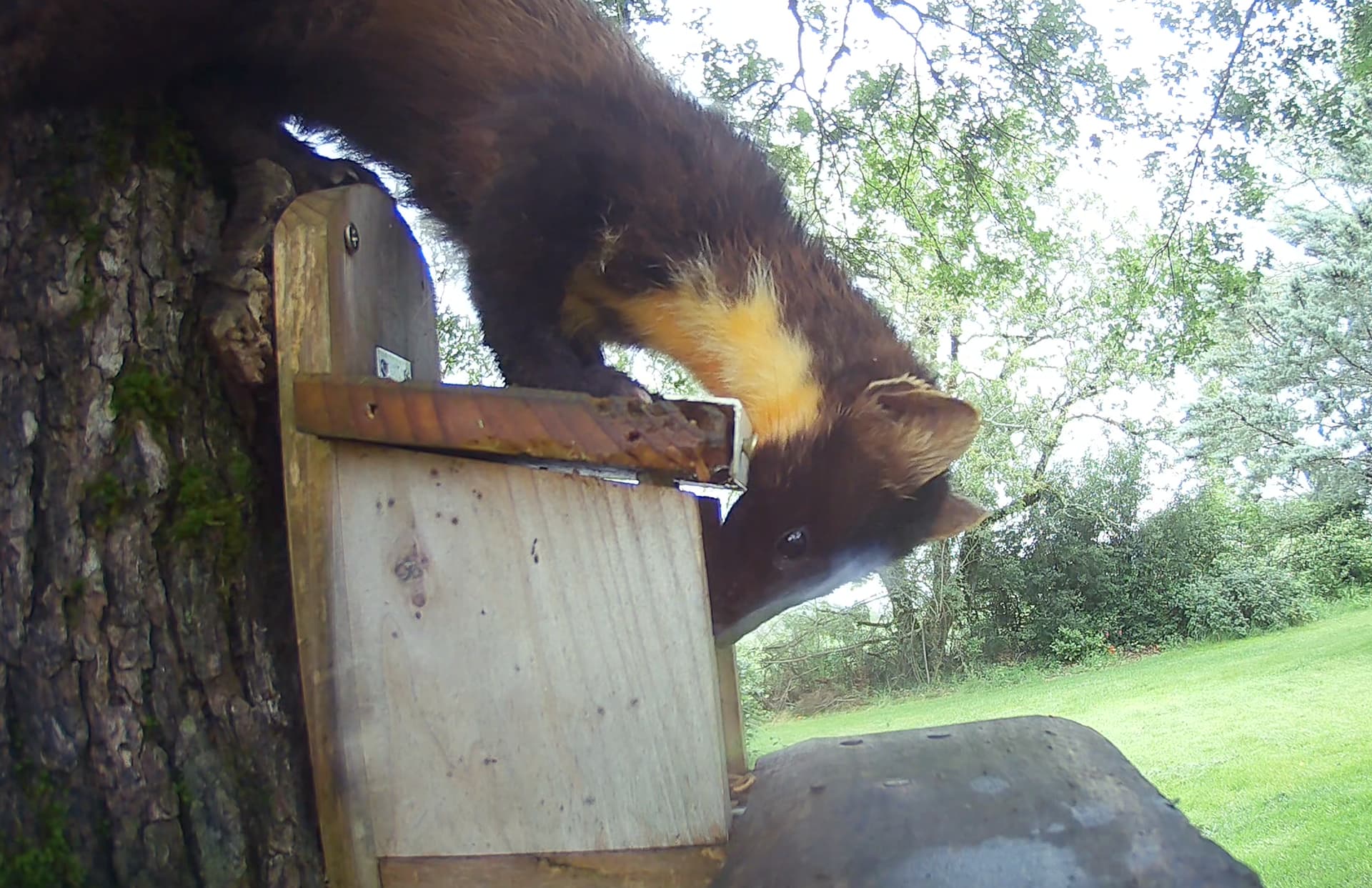 The martre can’t open the box (as yet) but now I’m worried about the safety of our squirrel… He is very good at keeping very still, pressed against the tree and being almost invisible, but he’s very small compared with this handsome animal.