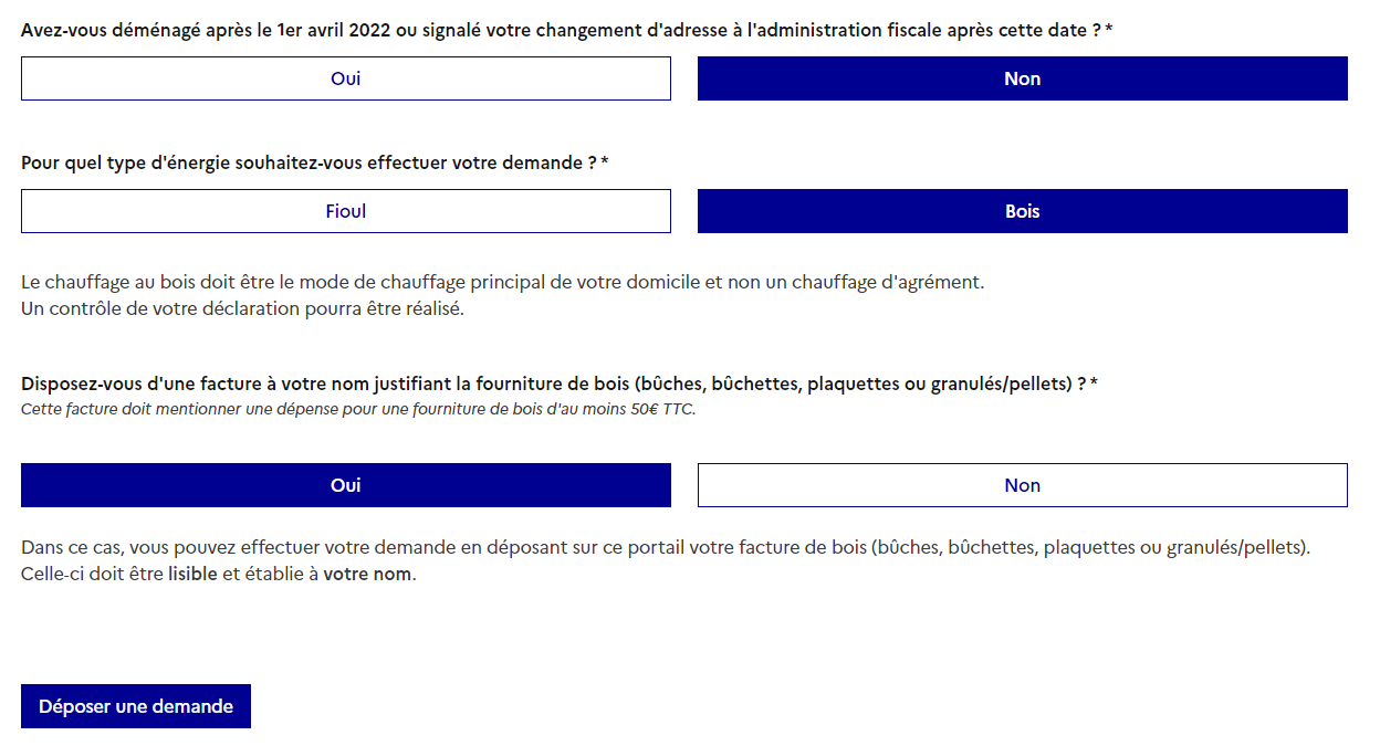 the Link for claiming exceptional aid for WOOD heating… is open now…