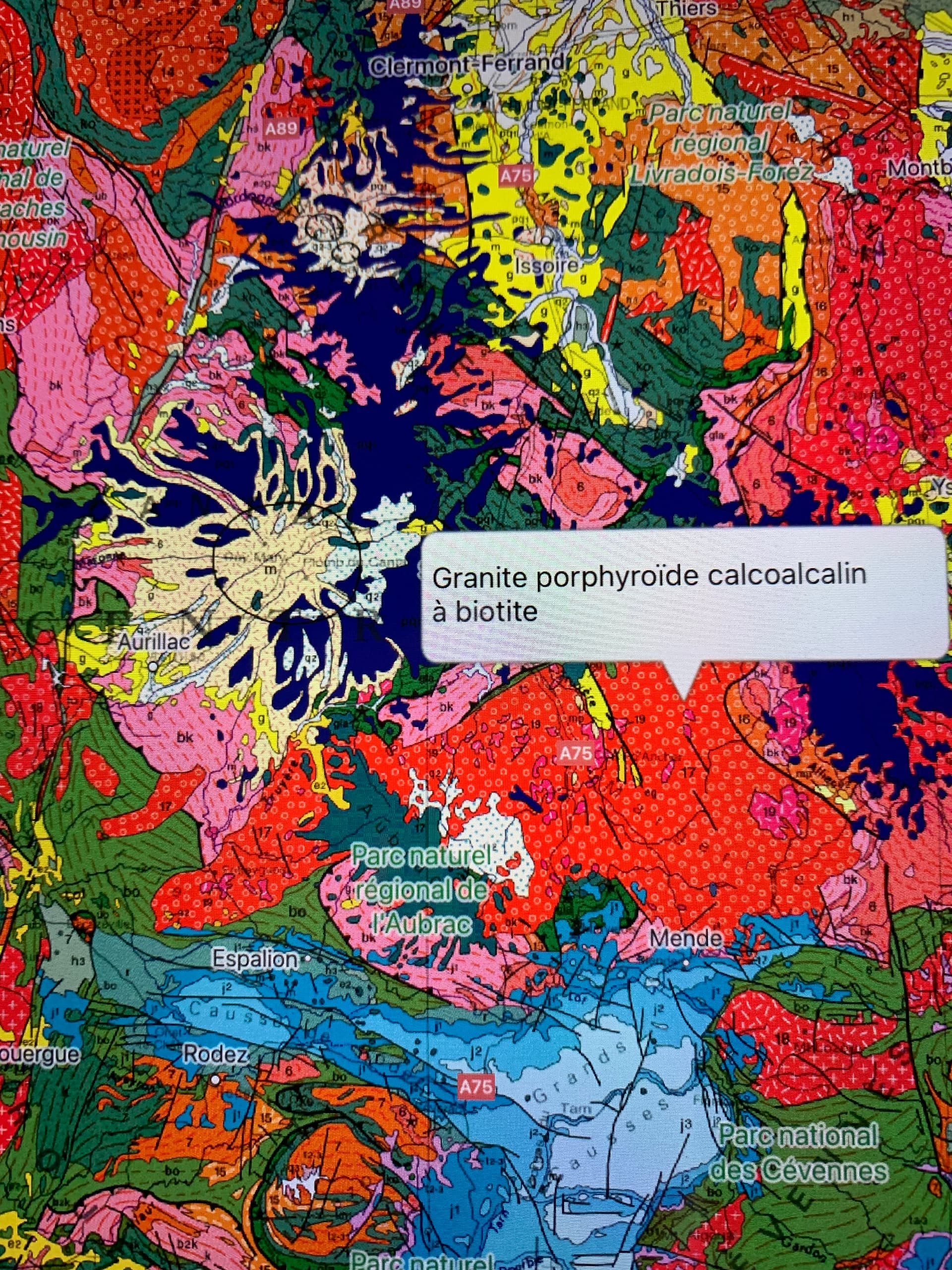 Here’s the massif central area. You touch an area on the screen to find out what the colour means.