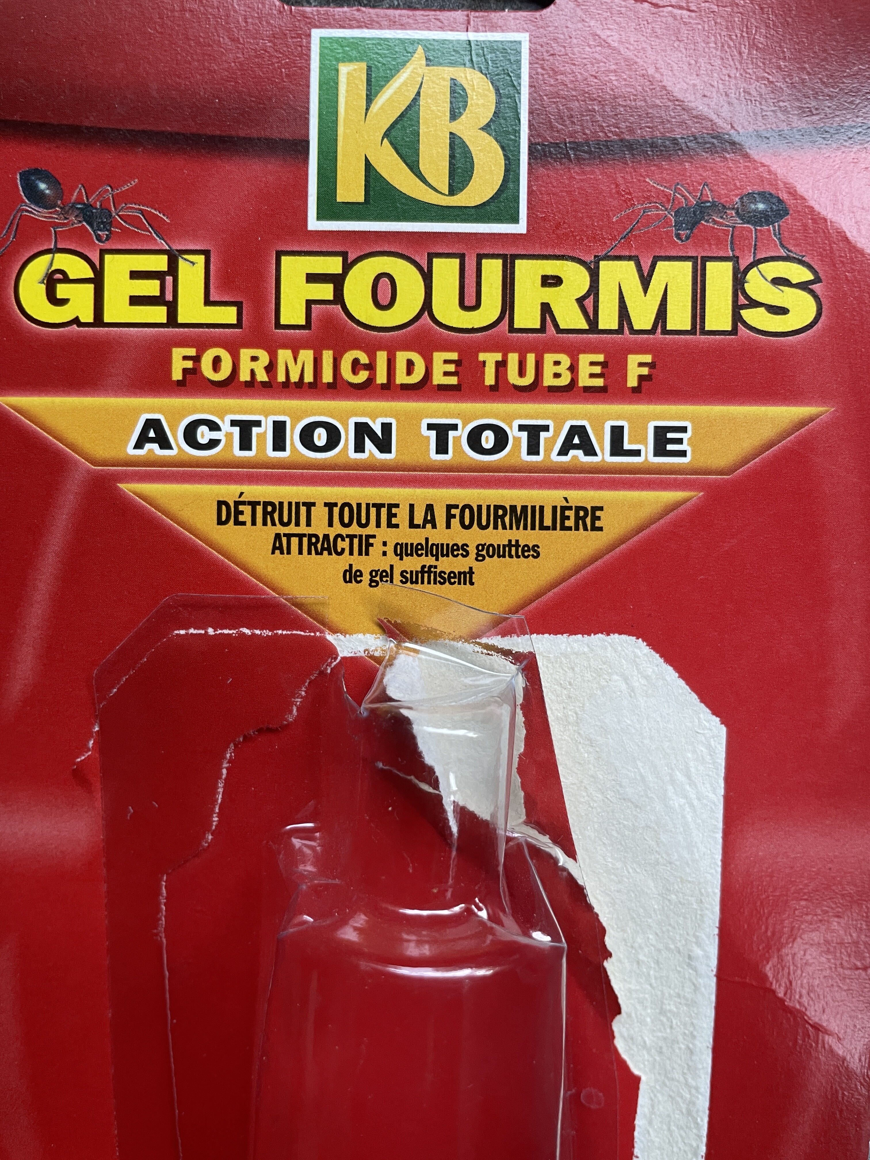 I used this once at our MS in Deux-Sevres and it worked very quickly and completely. It was just a little tube of clear liquid and it said to just put down a few drops. Not sure if it killed them or not, but I can say we had no more ants for about 4 years.