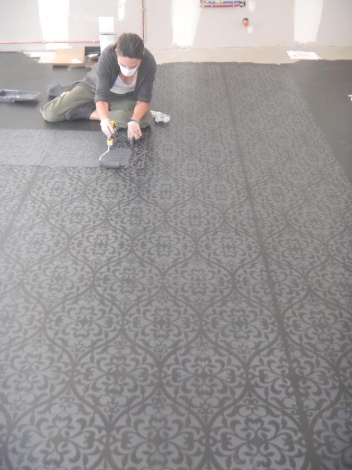 We always liked a concrete floor, this time we decided to stencil it, after staining.