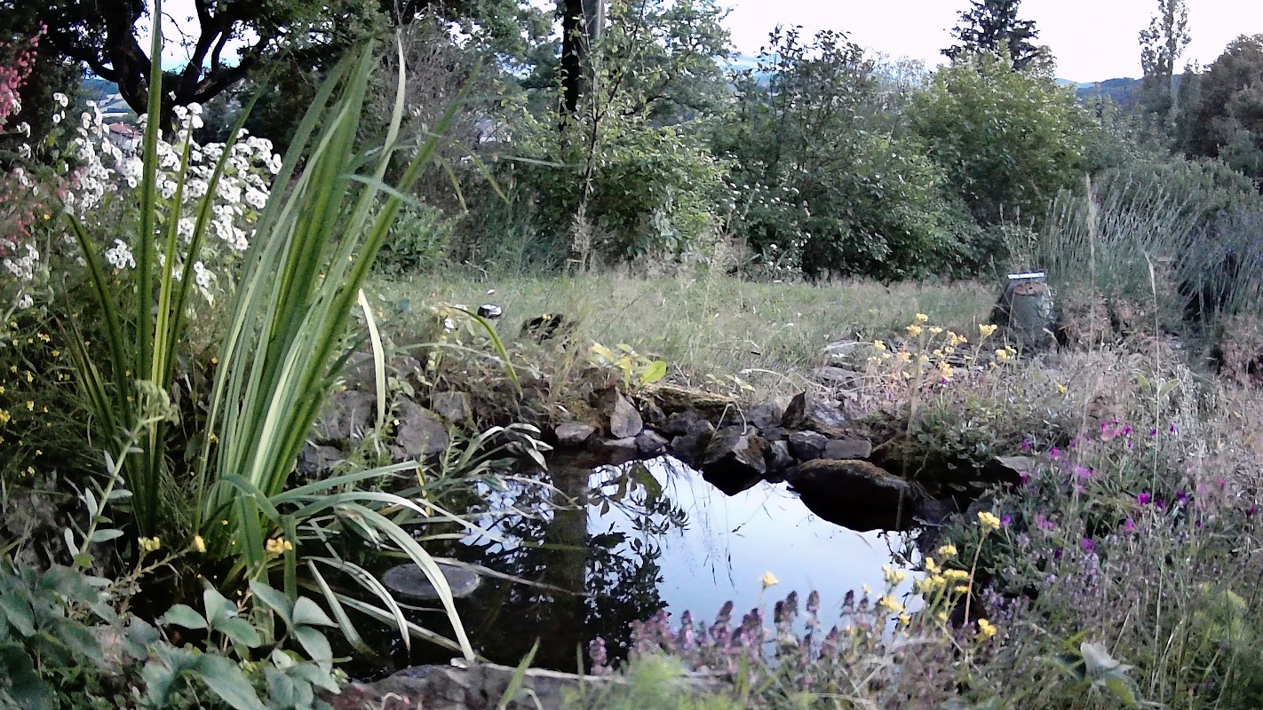The top pond is the large one for swimming in and is home to a large variety of wildlife, apart from me. Frogs, toads, newts and of course Hissing Sid, my small couleuvre. In fact there are 2 adults and young ones in Spring too. None bother me and in fact swim away to their nest nearby whenever I am emersed.