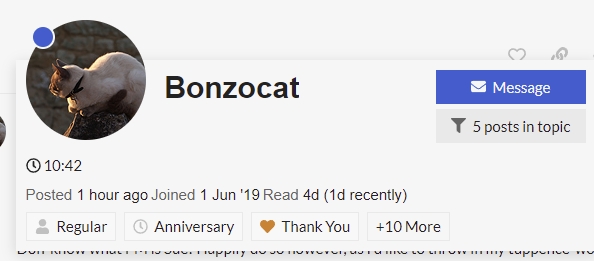 It’s a private message where we can send messages to each other and only we see them. If you click on my photo you should see a drop-down menu which includes a blue box saying message. Click on that and you can then send me a message privately which won’t appear on the open forum.