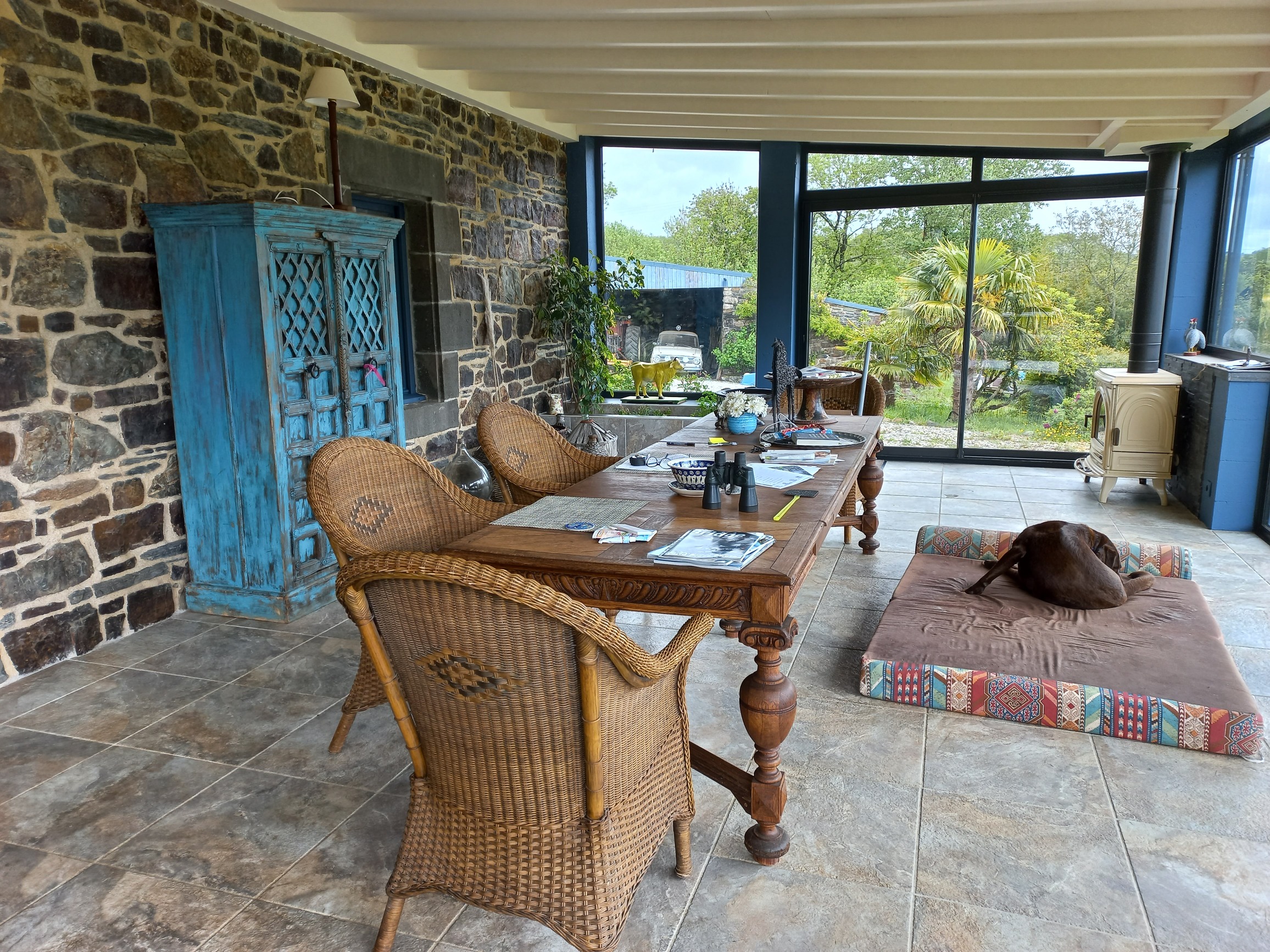 We recently bought a house in Finistère with a fantastic annex. Both sides aluminium sliding doors and on one side a big sliding window (all Bouvet). Zinc roof - noisy but fine with us.