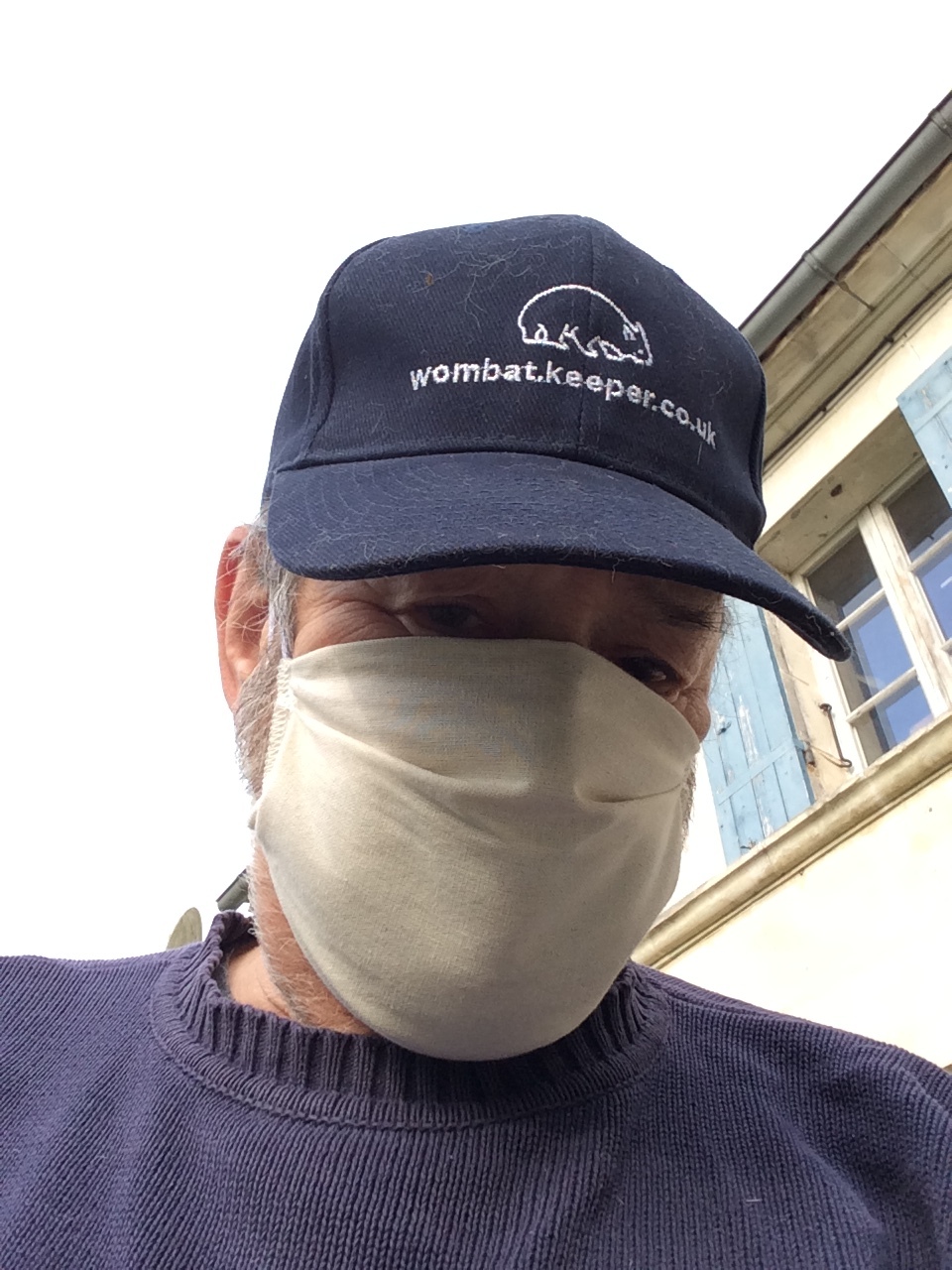Photo of myself with washable municipal face mask, made locally, issued by my commune…Tesson, Charente Maritime…to all, in all households. It fits well, is tight fitting and give me reassurance.