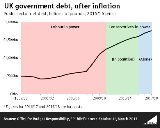 I could also, by the way, put up figures showing that on average each year in government, going right back to the war, the Tories have borrowed more than Labour, have repayed less, and the accumulated debt of the Tories is therefore much higher than Labourâs.
