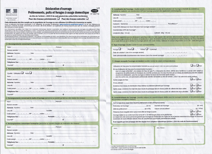 It does say fourages on that paperwork so probably updating who has one or a well. The majority of them have never been public health tested as regards to eau potable but yours may have been lucky, plus the pipework might be lead too at that age.