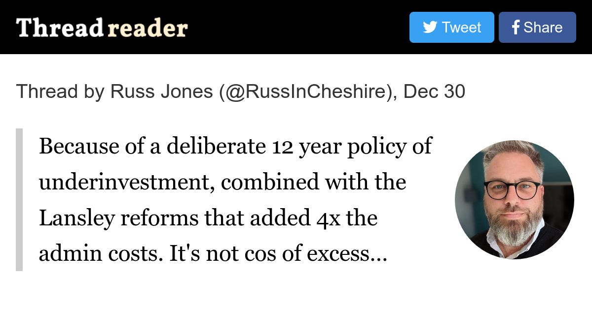 Then you can add in all the other mistakes like closing cottage hospitals, (which would provide beds for those in not major clinical need) and far too many management levels, no centralised purchasing to save money and the PPI.