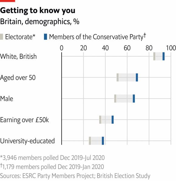 No one knows exactly how many Tory party members there are; it is thought to be around 160,000. They are overwhelmingly male, old and white. At hustings they are polite, if prone to the odd harrumph. Some are attracted by the âbonkersâ nature of Ms Truss, the foreign secretary and favourite to beat Mr Sunak, the former chancellor. And many do, in fact, wear pink trousers.