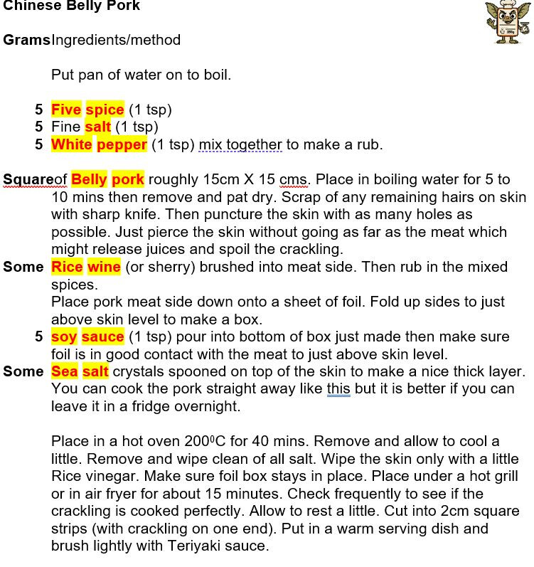 That recipe of Rick Steinns is grogeous. Thepork is cut into chunks, each with a topping of crackling and is easy to eat with chopsticks. I can smell ours cooking now…