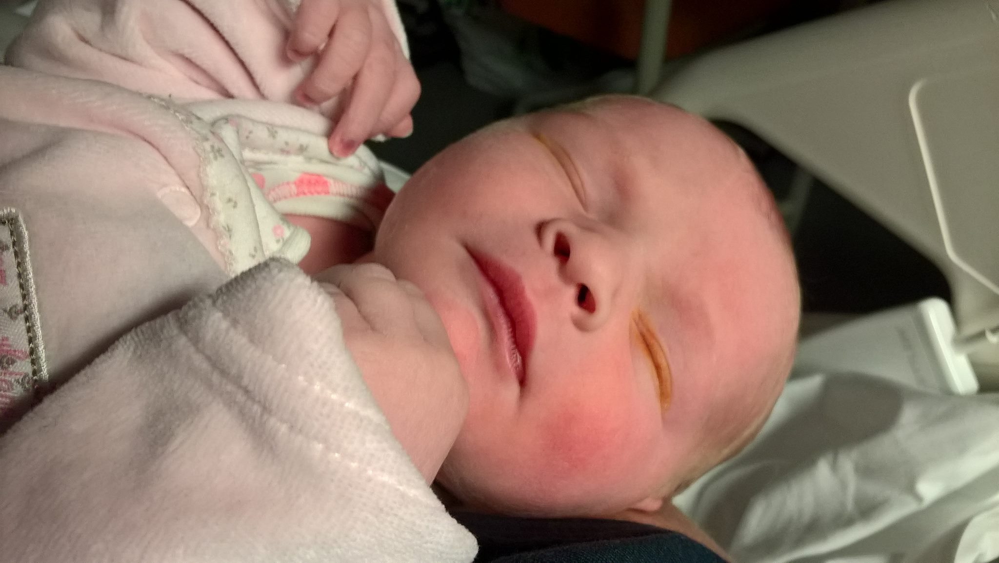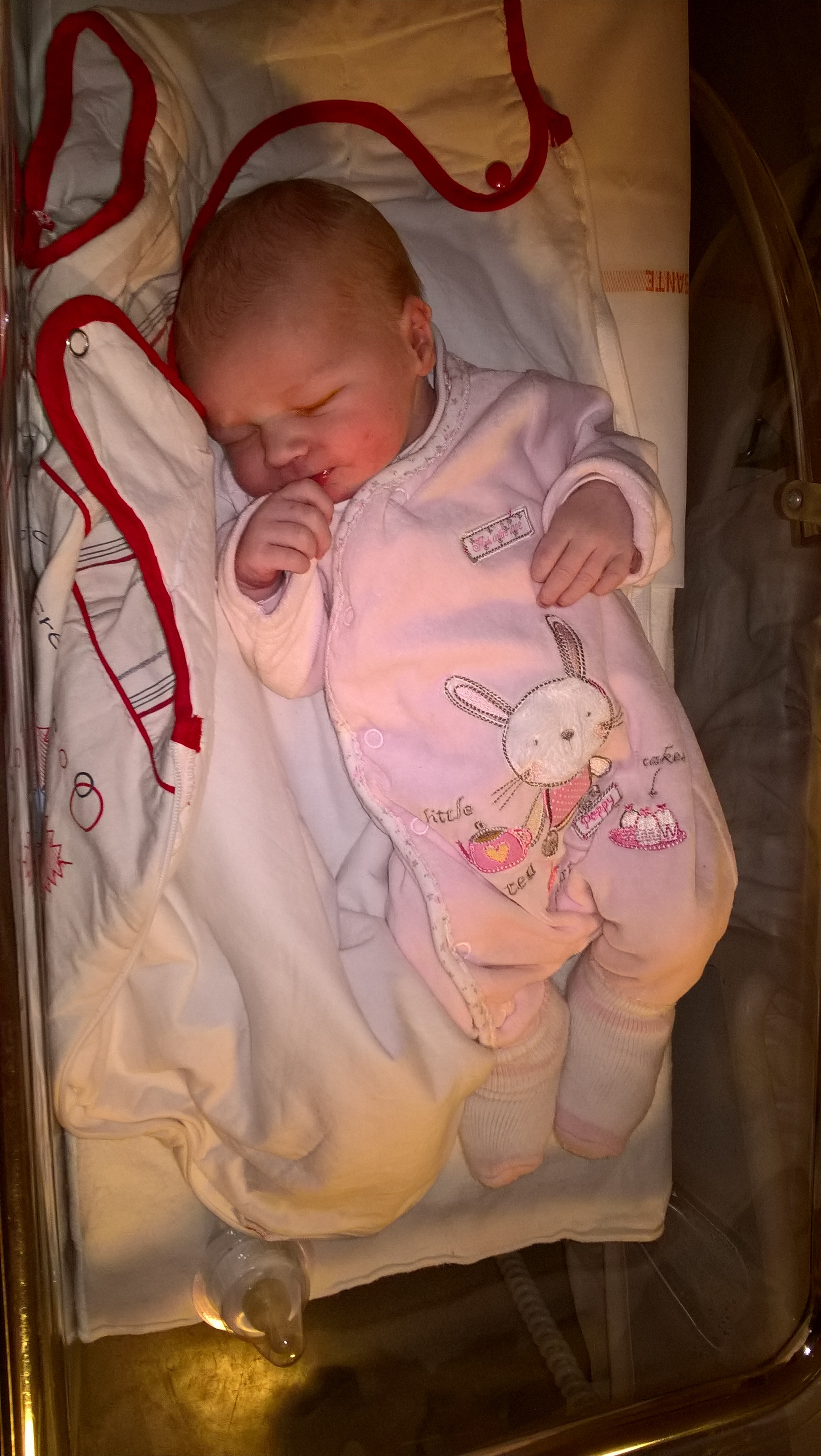 well, here she is, newest SFN member, Lucille Susie Robins, 7lbs (3.1kg) born yesterday at 09h54, with… proud daddy watching on! Very happy and totally smitten, she’s perfect.