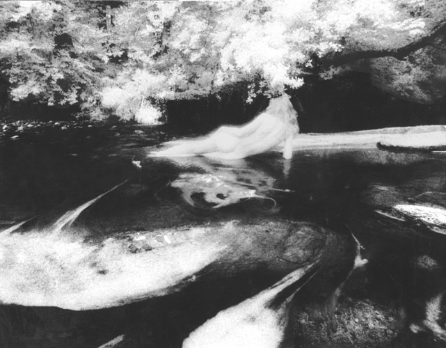 I call it "ONDINE" (the water fairy). It's another infra-red B & W shot with my friend/model Cherith being very brave and lying in c-o-l-d water. Water doesn't register in IR, only the moss, the leaves and the skin gives off a heat signature. Don't want to take the romance out of it too much so perhaps I should shut up now.