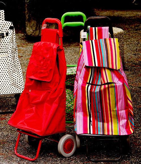 Should you want to look like a local, your chariot needs to be one with lots of French, franglais and English phrases about grocery shopping - ‘J’adore les shoppings’ etc.