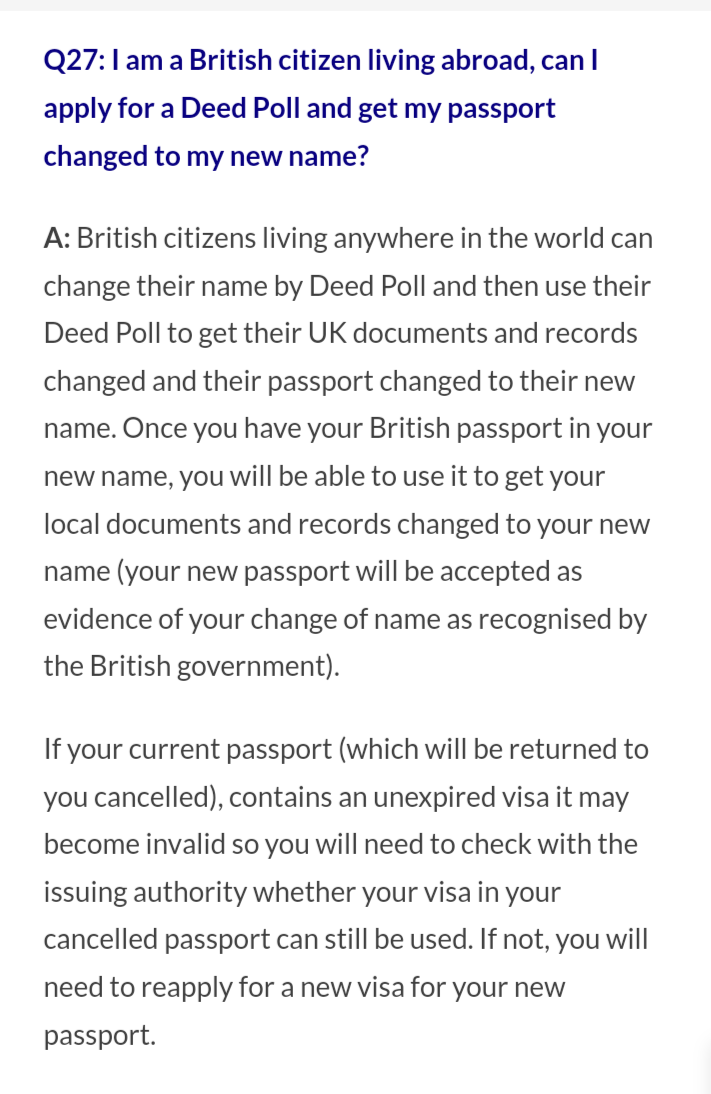 If you’re a permanent resident overseas, you cannot change your name by deed poll.