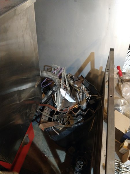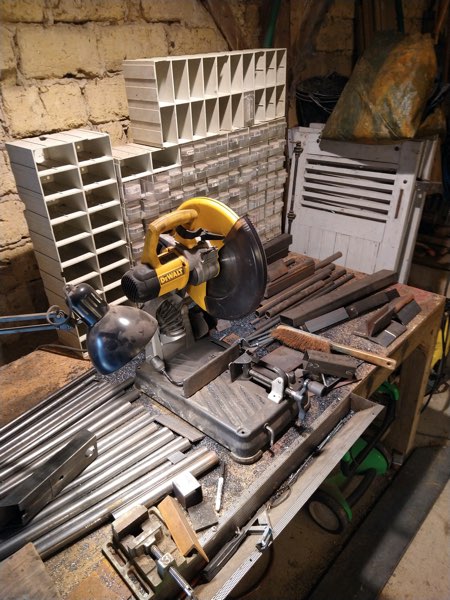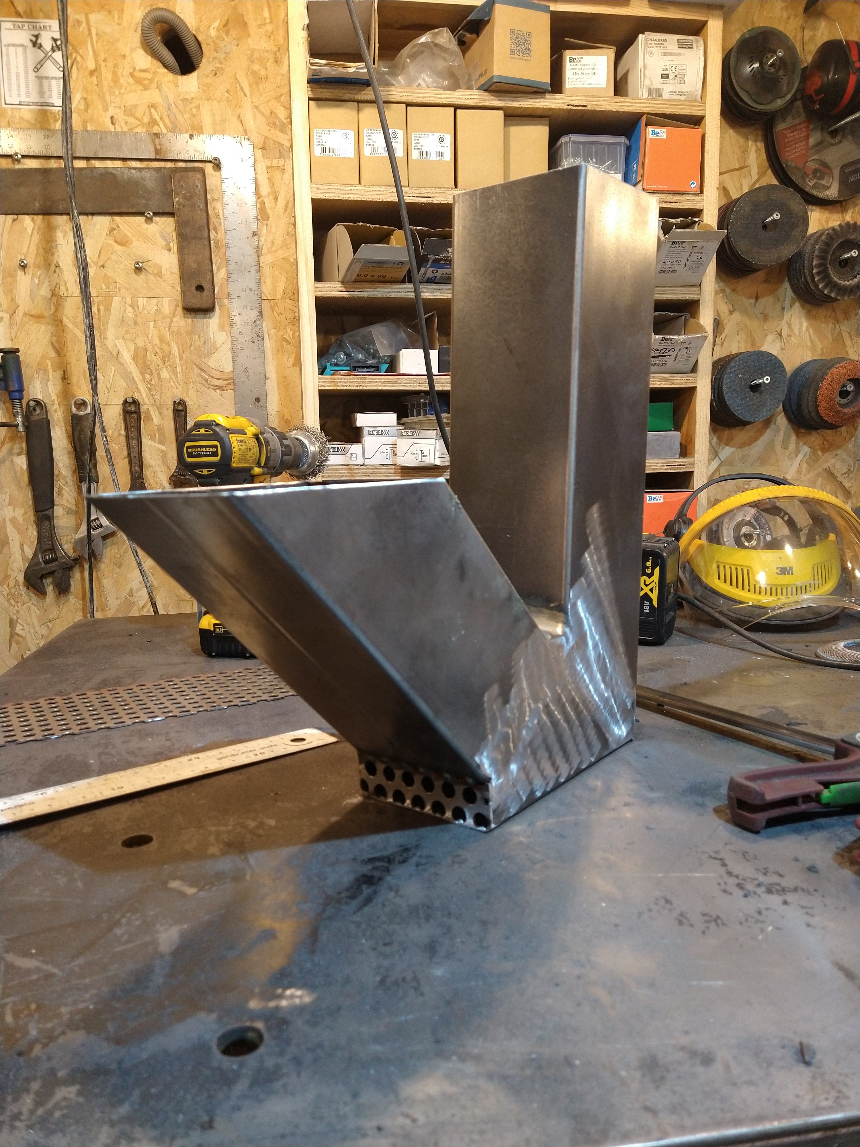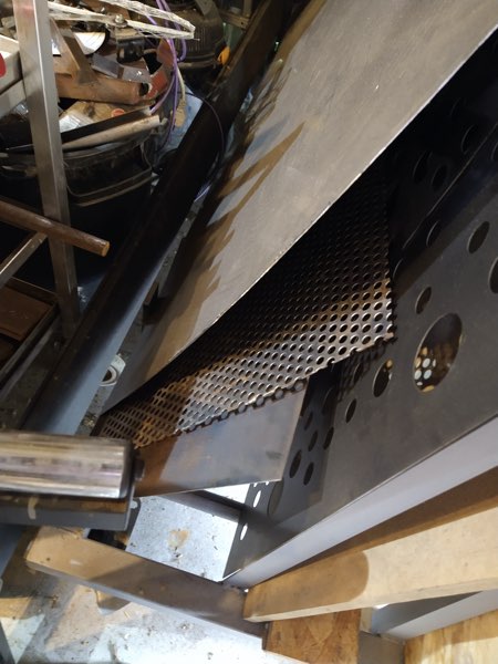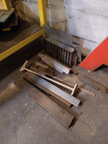 100mm tube, 70 x 70 angle, 100mm solid bar and 50mm tube for the feet and a tiny bit of perforated steel for the air inlet.