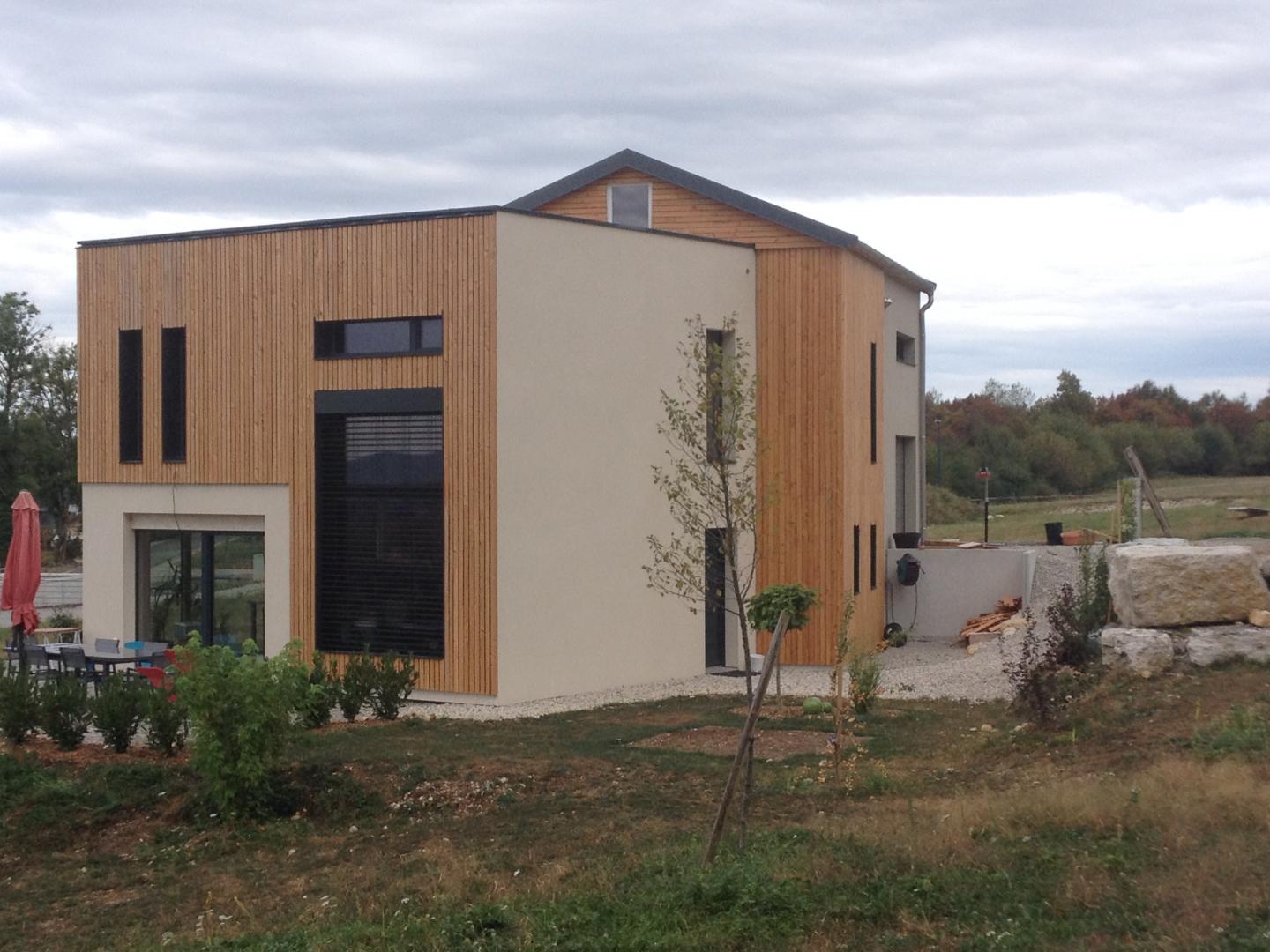 As I recall Graham’s house is a typical french style self build (I know you posted a photo somewhere Graham, just can’t remember which post). If that is the sort of thing you like then just look round your area to find local firm and get them to do it! Planning permission is free in france, and building firms will project manage for you. This is what a huge number of young french families do: they buy a plot on a lotissement and then get local firm to design and build the house. Search locally for “constucteur maison individuelles clé à main”. And if you fimd a good firm you can have a large say in energy efficiency and design style. I’ve popped a photo below of local maison passive built that way by a local family.