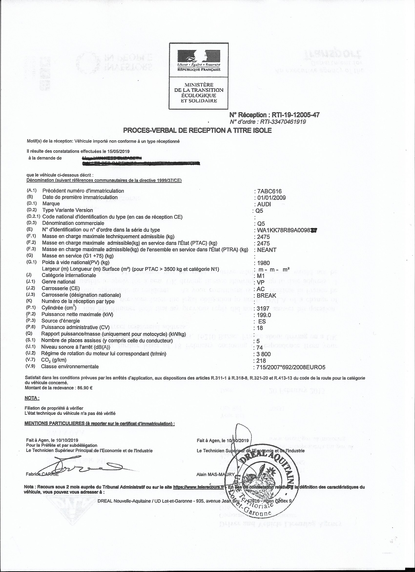 If you really love it (Audi Q5s are also available in Europe) then it will need to be inspected by DREAL to see if it meets EU specs. You may get a partial certificate of conformity from VAG. The seatbelts will need changing but that should be about all. The labels may not have an E number.