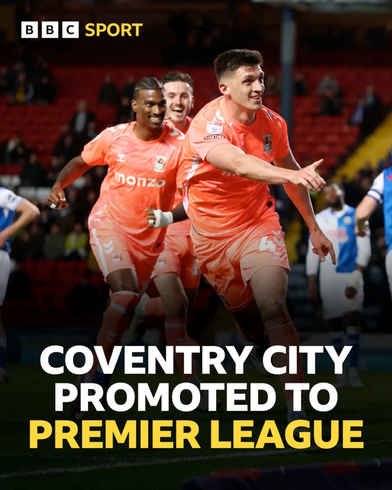Congratulations to Coventry and welcome to the Premier League: looking forward to a trip to the Ricoh next season but we may need our keeper back.
