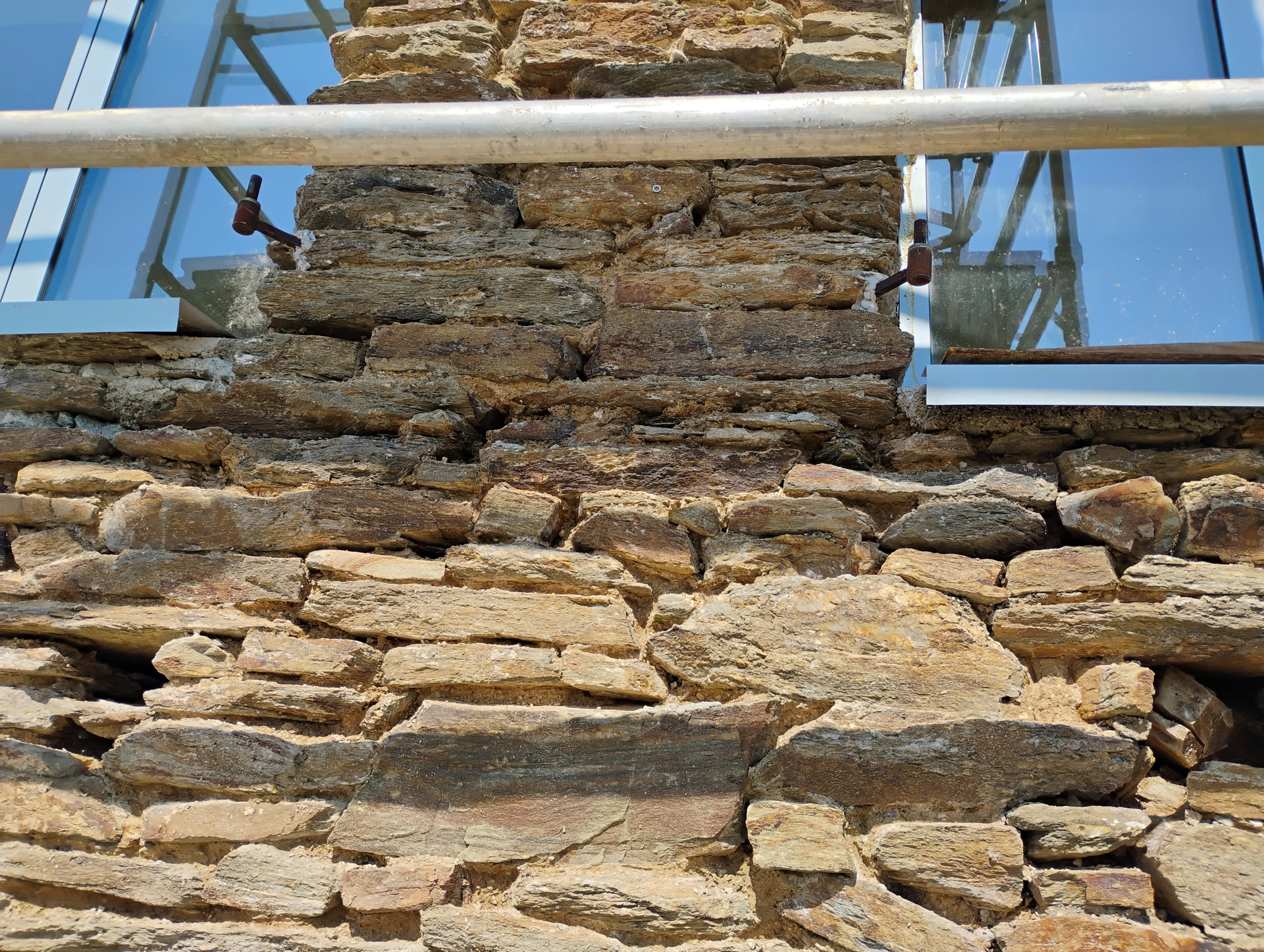 Ummmm…I’m having to do the job in 2.5 m wide vertical strips but ideally, I would move along sequentially but on this façade, I need to tackle the worst parts first and then I’ll come back and complete the jigsaw…I’m working on this current part because she recently had new windows fitted and I need to finish the work around the frames…. including all the stonework to the ground.