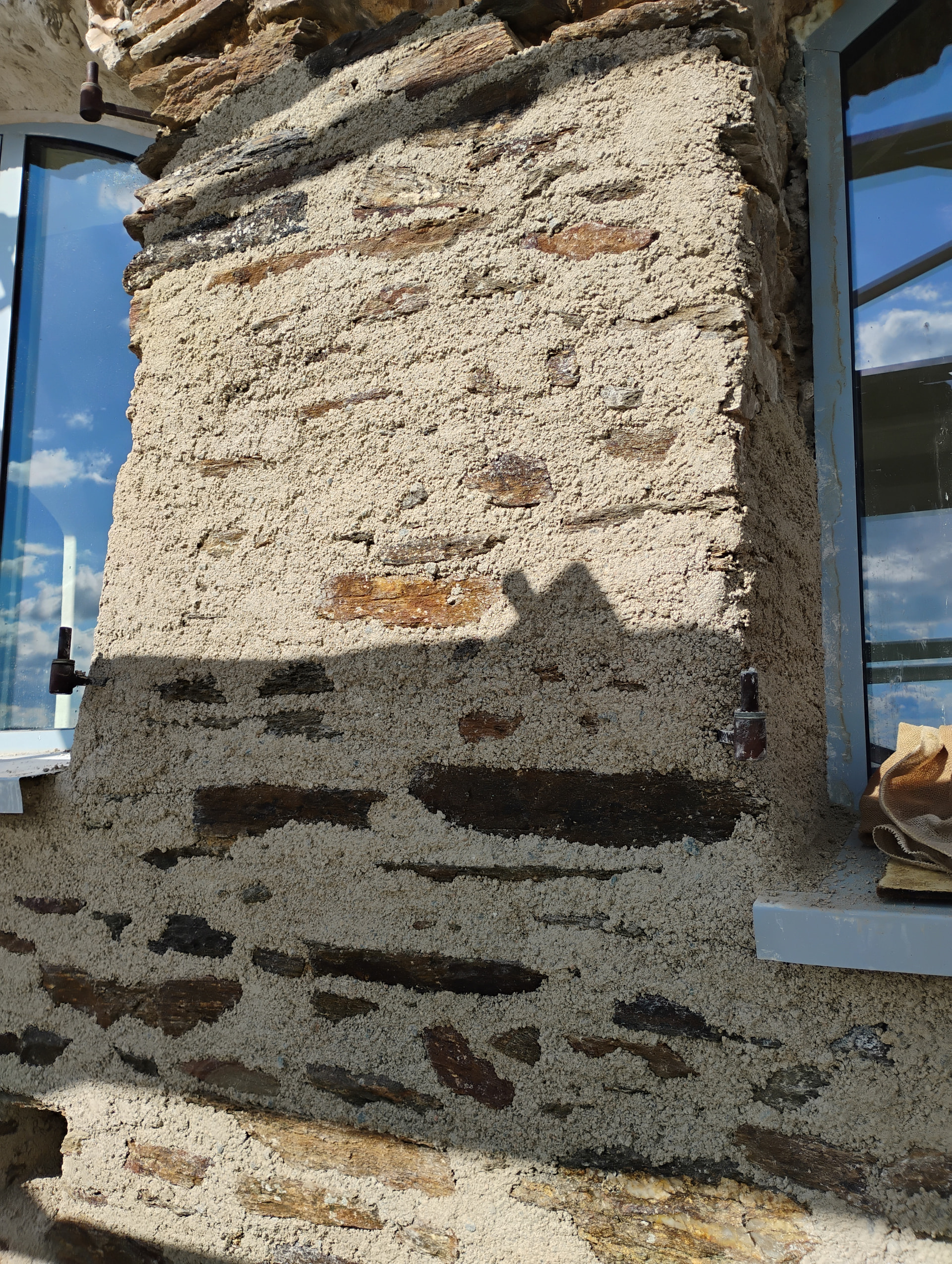 Have you got some sack cloth etc to slow down the chaux cure as it looks like the wall is bathed in sunshine?