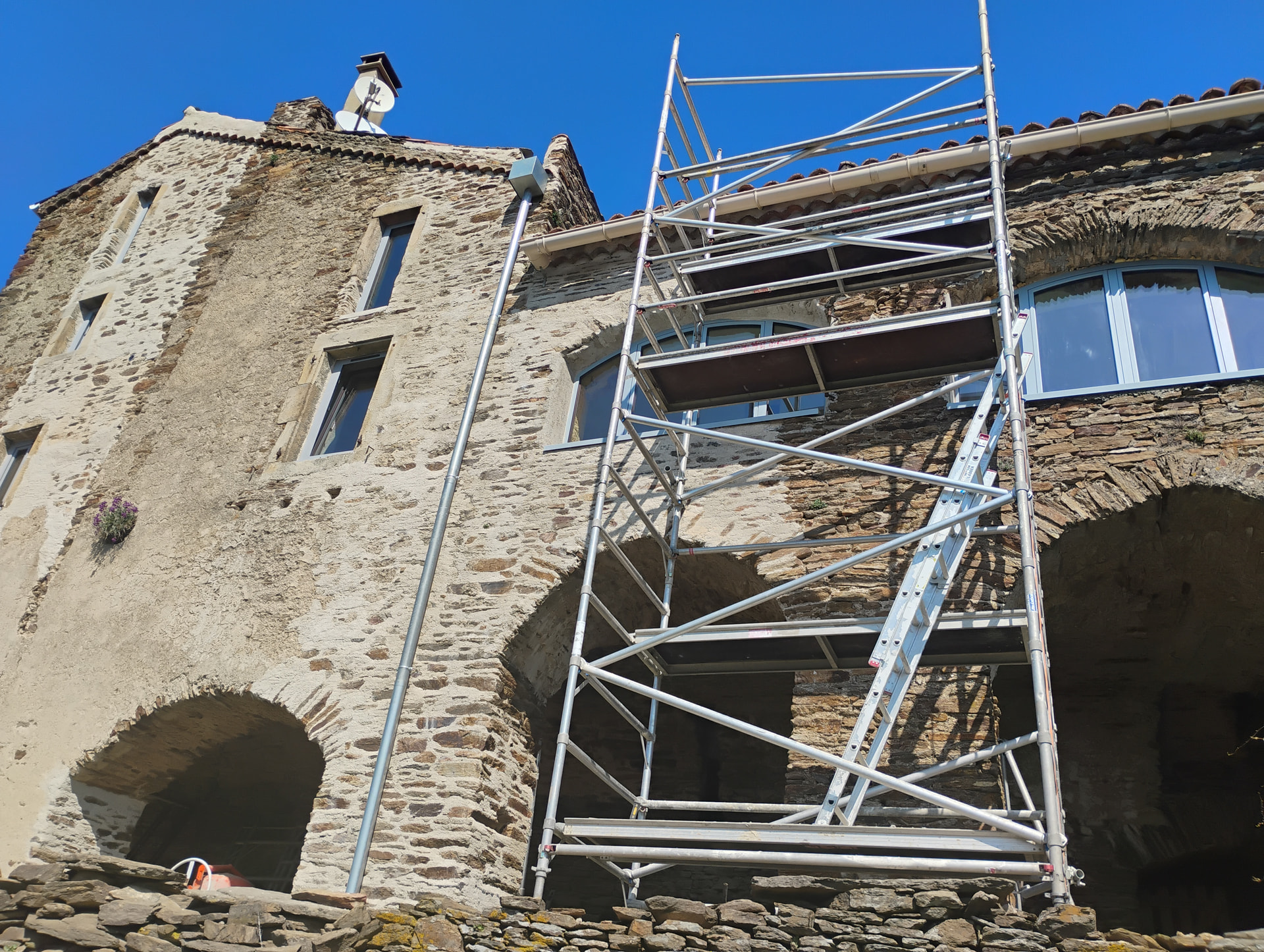 Just completed re-erecting the scaffolding and hope to finish the repairs to the stonework and re-pointing in a month or so.. (all in lime of course)