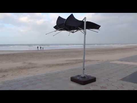 I’m with Mat on this one. We have two large cantilever parasols. Despite having concret block fixings to ground one took off in a sudden gust (not a storm or general high wind day) and ended up on the roof. It now sports a line of decorative daisies mending the rip.