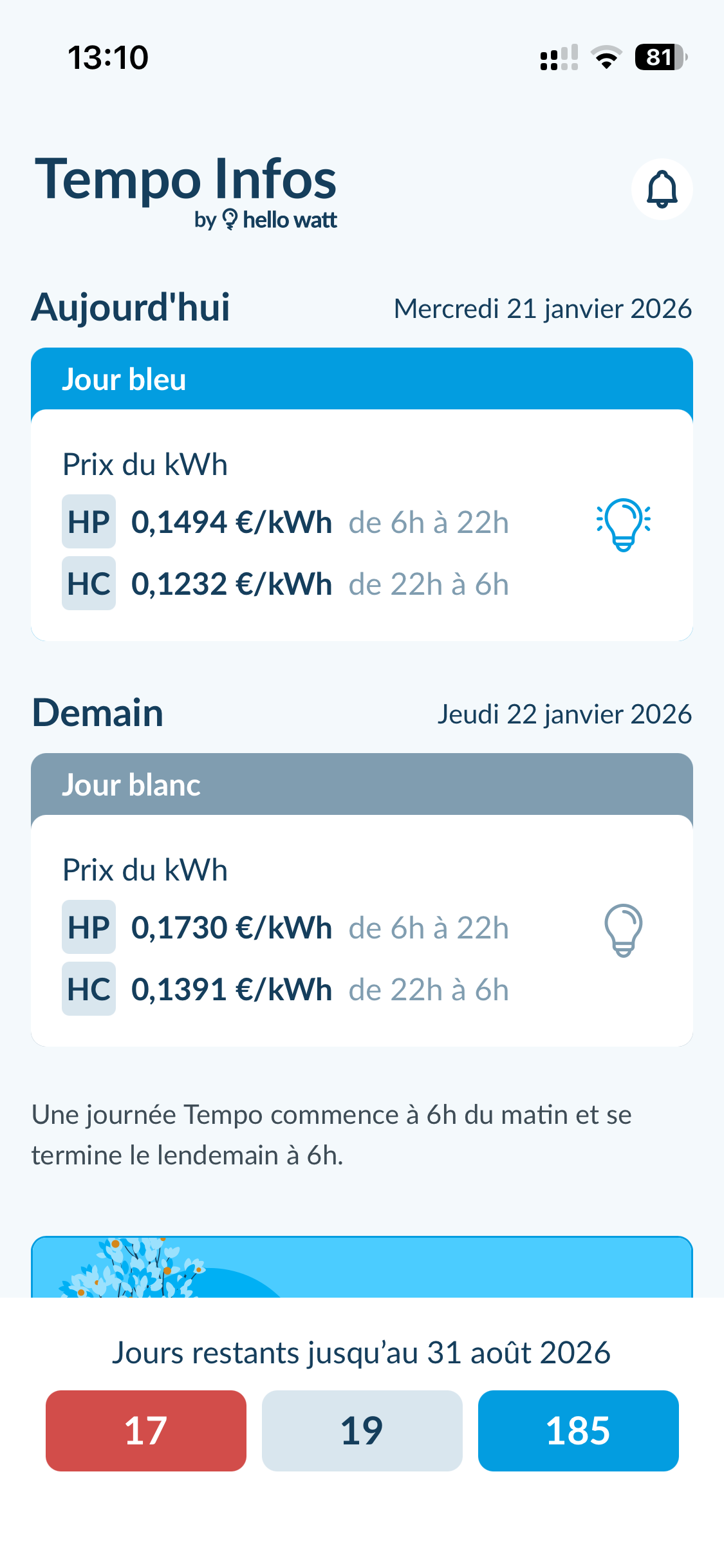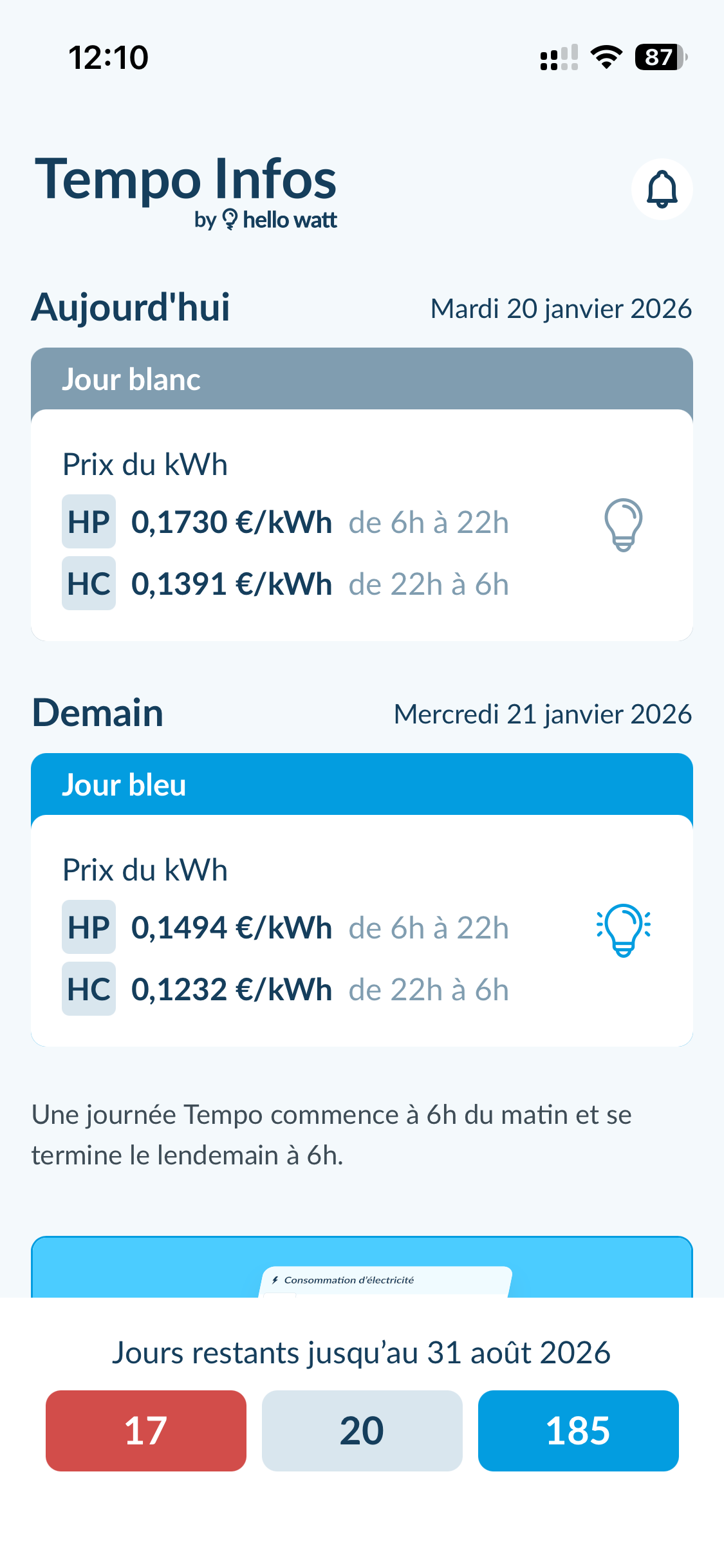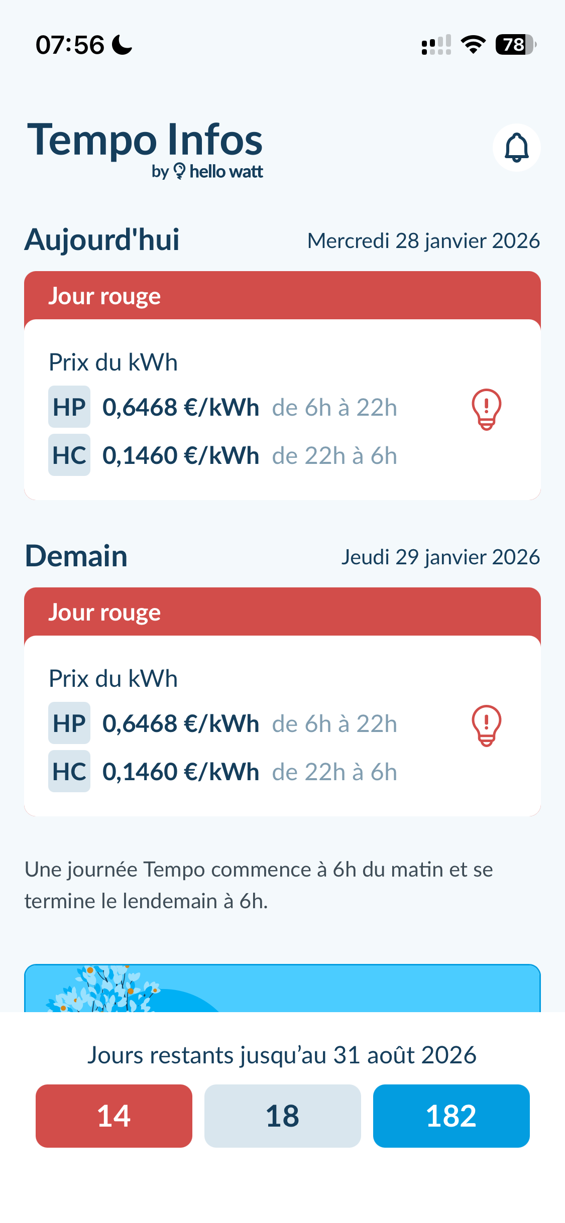 Yep, totally possible, just worth noting that Tempo days aren’t decided only by temperature. RTE mainly looks at net consumption (national demand minus solar + wind production). So even with milder temps, if there’s little wind/solar and demand stays high, red days can still happen. Temperature is only part of the equation