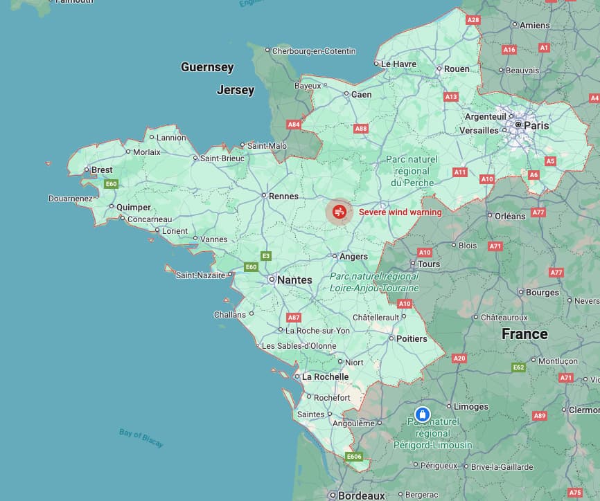 There’s a red wind warning for Manche today. Thankfully I don’t think you’re going to get snow, that’s hitting Wales and the UK Midlands where the air is colder…