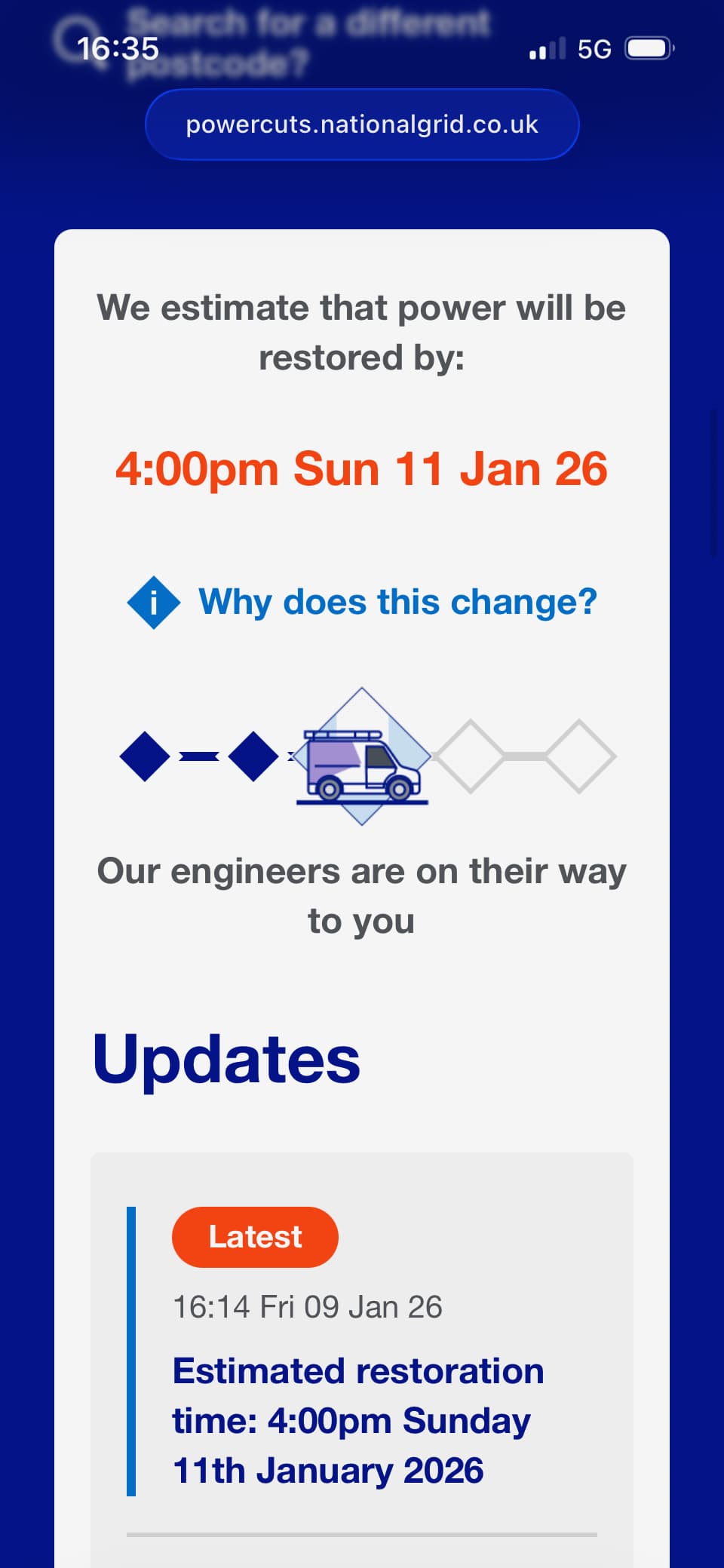 UK National Grid estimate she should be reconnected… by 4pm on Sunday!!