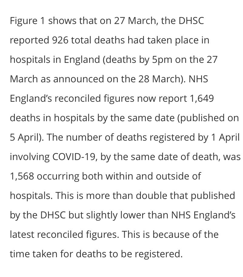 The deaths figure is intriguing - possibly a âweekend effectâ as Anna suggested - certainly I donât think there is anything to indicate that the outlook for patients on their way into hospital has suddenly improved - and even if mortality stayed at this level compared with new cases 14 days ago we are still looking at 20k deaths in the next 2 weeks.