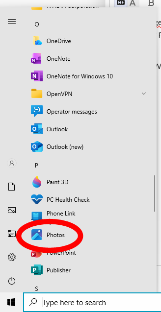 If you have Windows on your PC do you have “photos” in the list when you click on the windows icon?