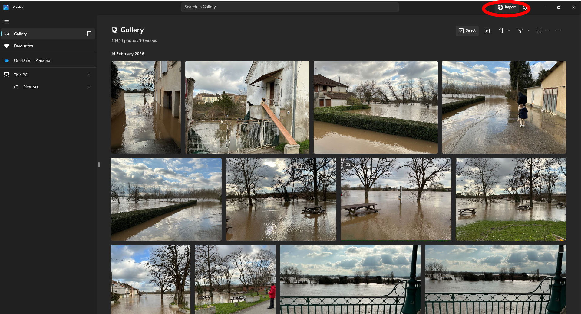 Click on that, and with a bit of luck your phone number will be on the list of places you can import from. Click on your phone number and the photos that are on your phone will appear and you can click on those you want to download.