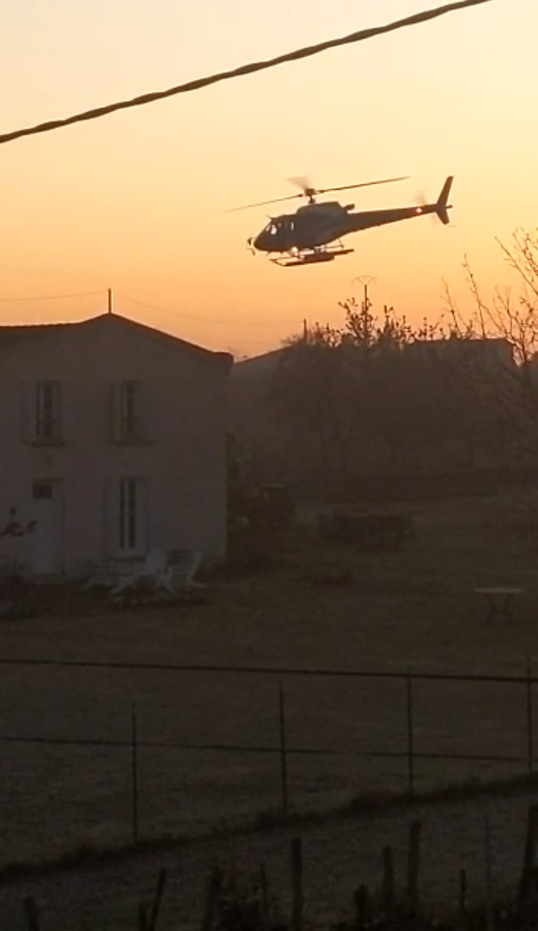 Since 4am this morning we have had helicopters hovering low over the vines to help with the frost. We had the same lady year for the first time.