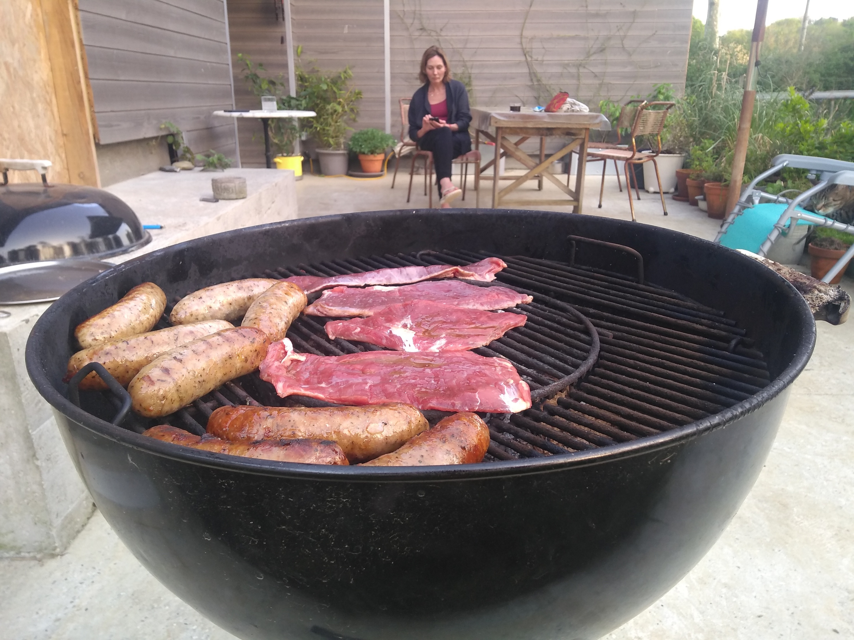 Barbie’s all prepped, Toulouse sausages bought and salad made, Greene King IPA chilling in the fridge ready for aperos.