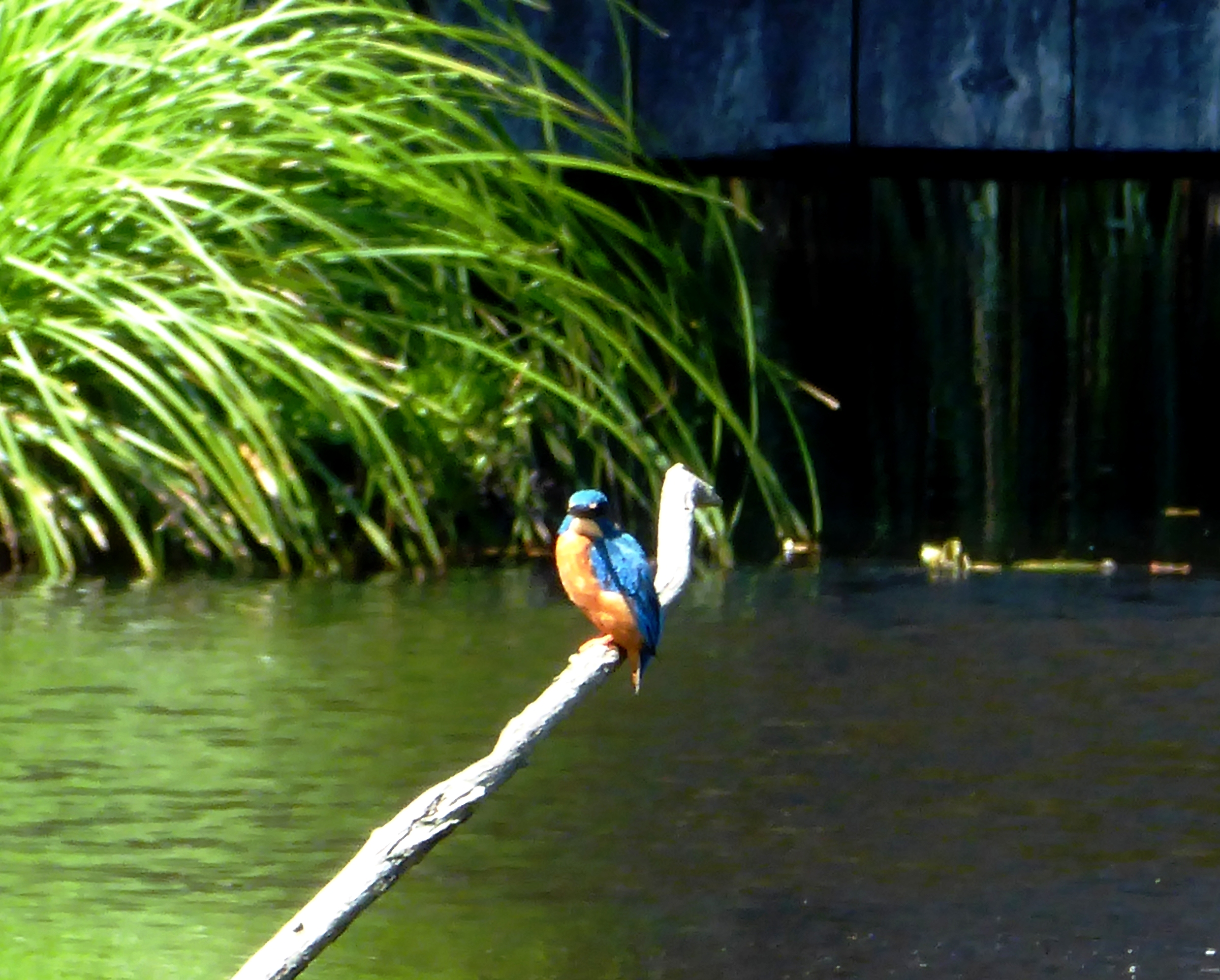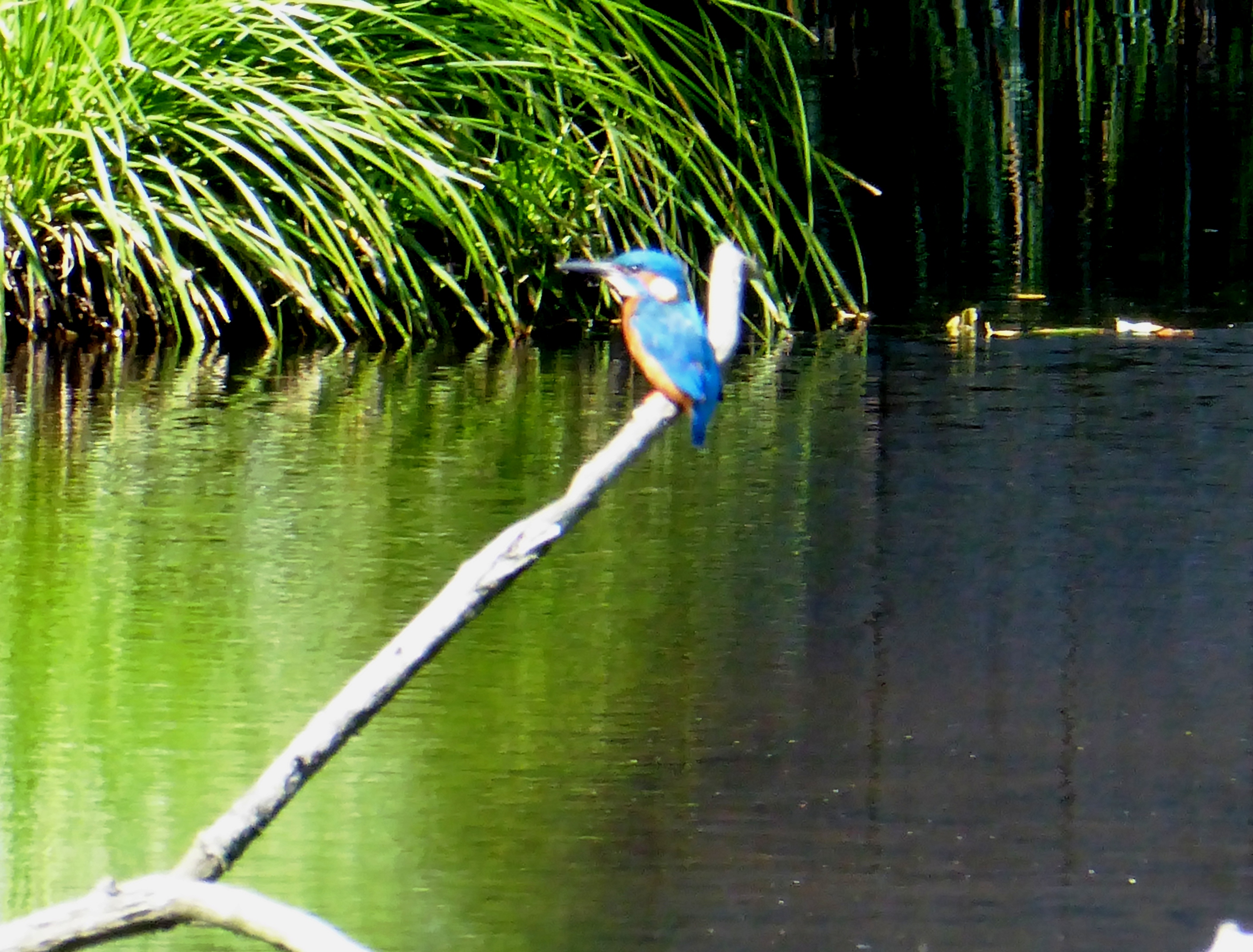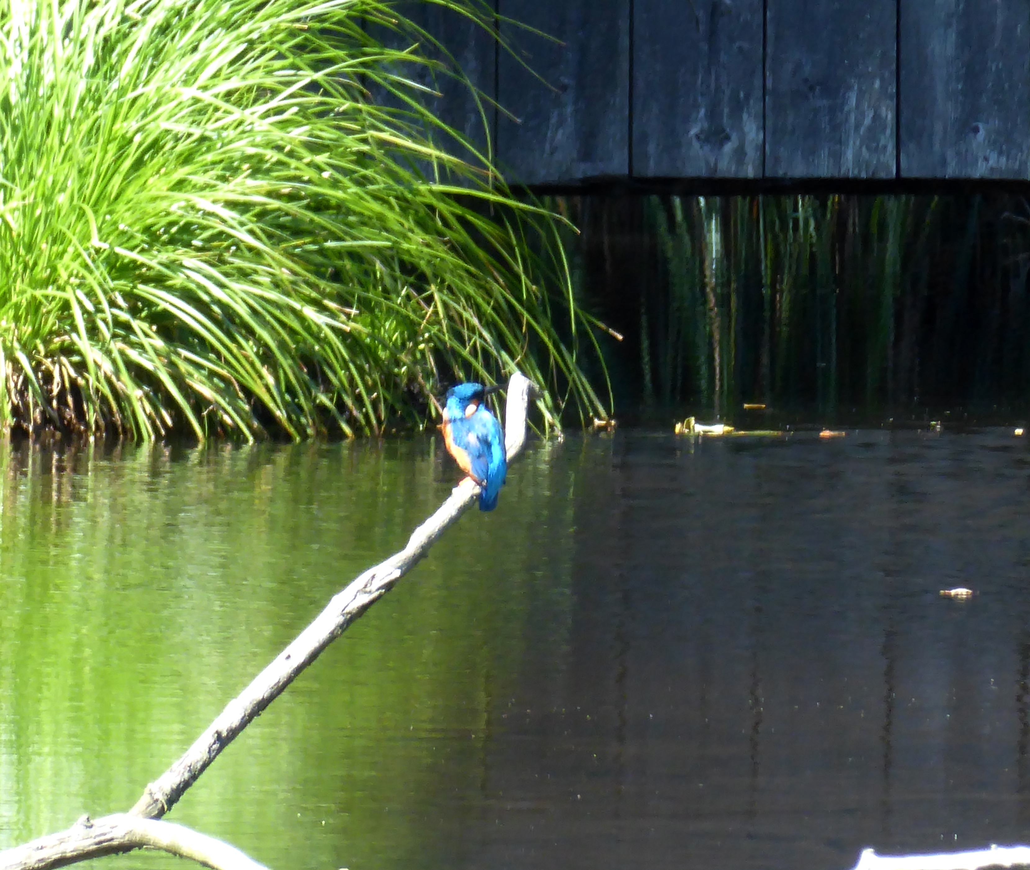I think Kingfishers are beautiful birds… of course I’ve seen them in my bird books, but I have only ever seen one in the wild. I caught a flash of colour when we were passing near a local river/stream… so asked OH to turn the car around for another look. We drove slowly back and found this lovely bird quite happily darting about and skimming over the water… We sat quietly and watched it for a few minutes… magic.